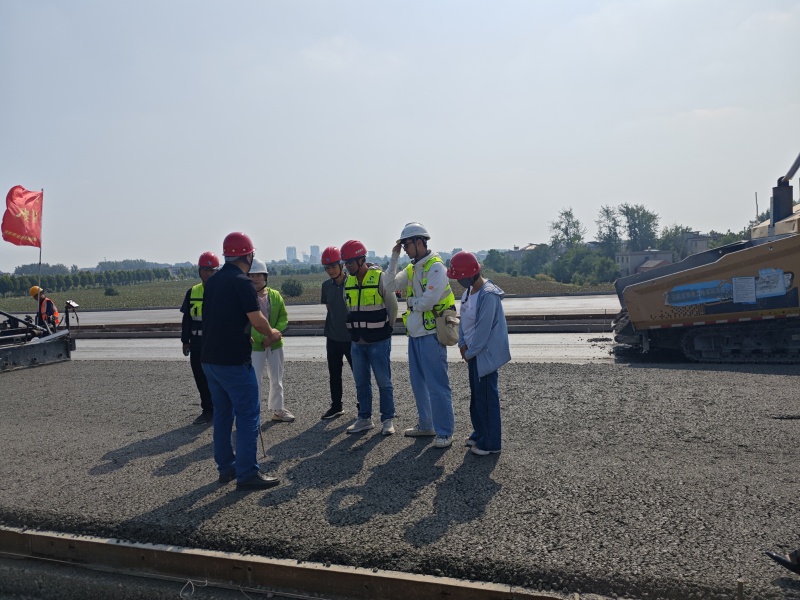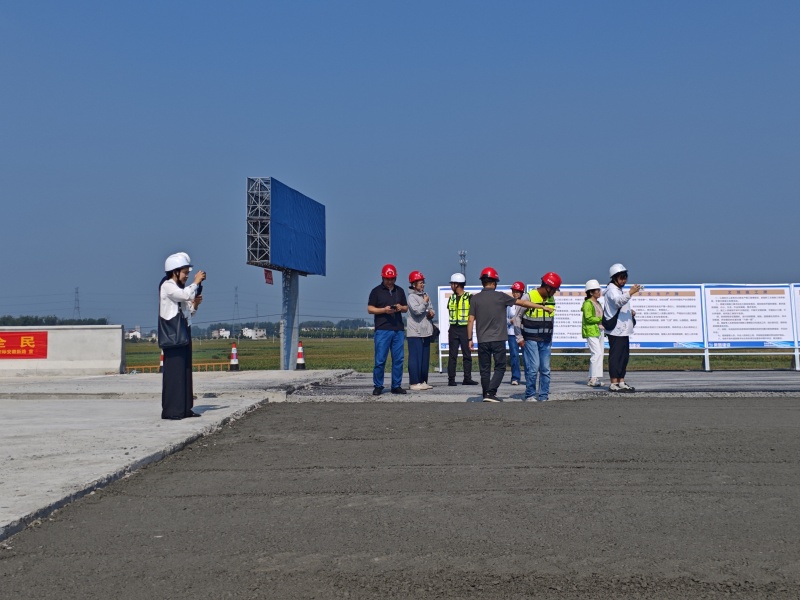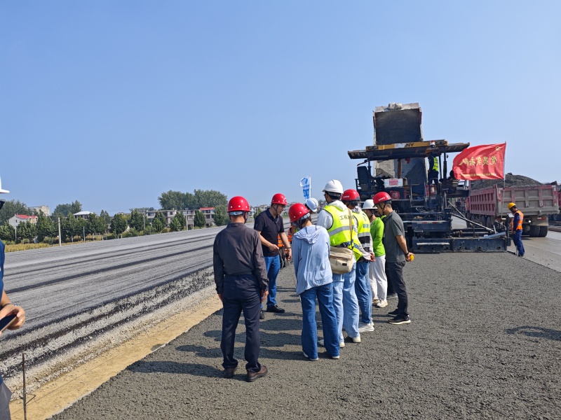 2024年9月4日上午,阜阳市交通质安中心副主任崔纪强协电视台记者一行赴徐淮阜高速项目水稳施工现场视察指导。项目办副主任王壮飞、项目经理张仕龙等陪同。