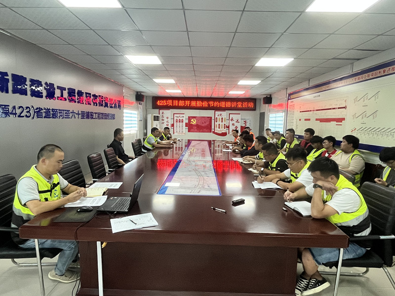 2024年7月22日,为增强项目部员工的勤俭节约意识,降低项目部运营成本,提高资源利用效率,425项目部特组织召开勤俭节约道德讲堂,本次活动由项目经理王震主持,项目部全体员工参加。