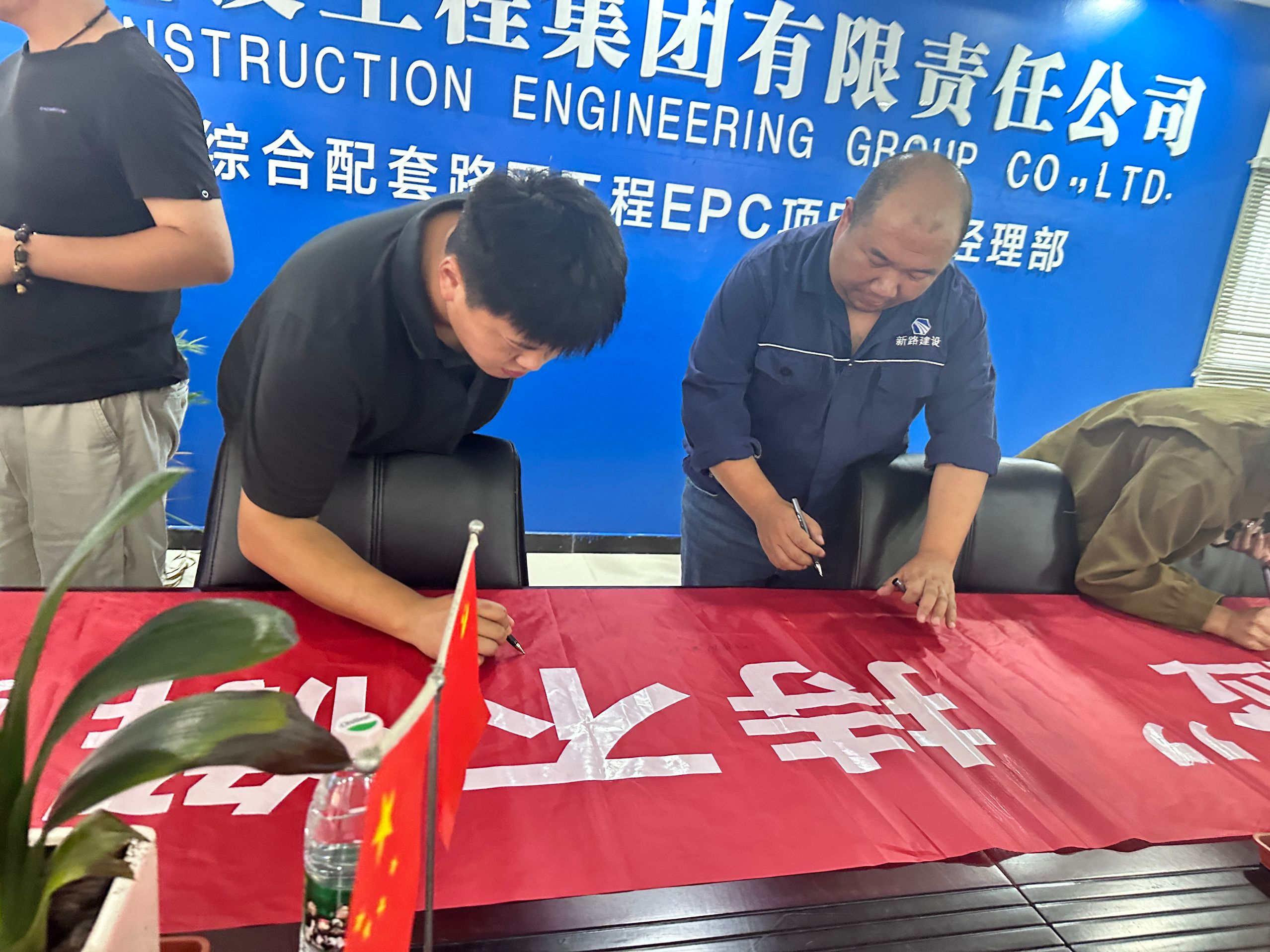 职工在条幅签名