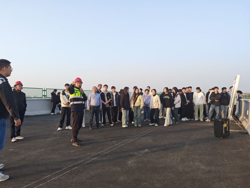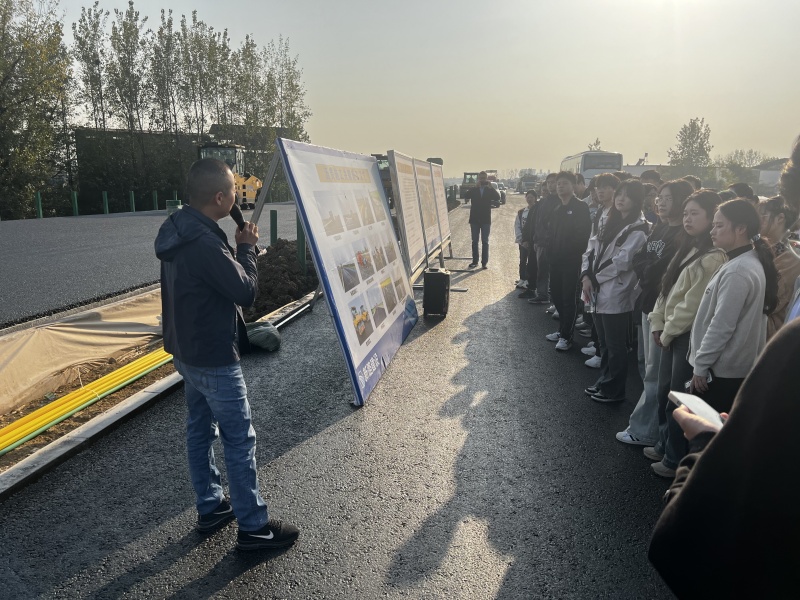 阜阳师范大学师生先后抵达徐淮阜高速公路项目沥青施工现场、三合特大桥、附属工程施工现场、三塔互通枢纽观摩实践。过程中,项目负责人详细介绍了沥青施工的工艺流程,各现场负责人也为阜阳师范大学师生讲解了各工程的施工特点,并为大家答疑解惑。