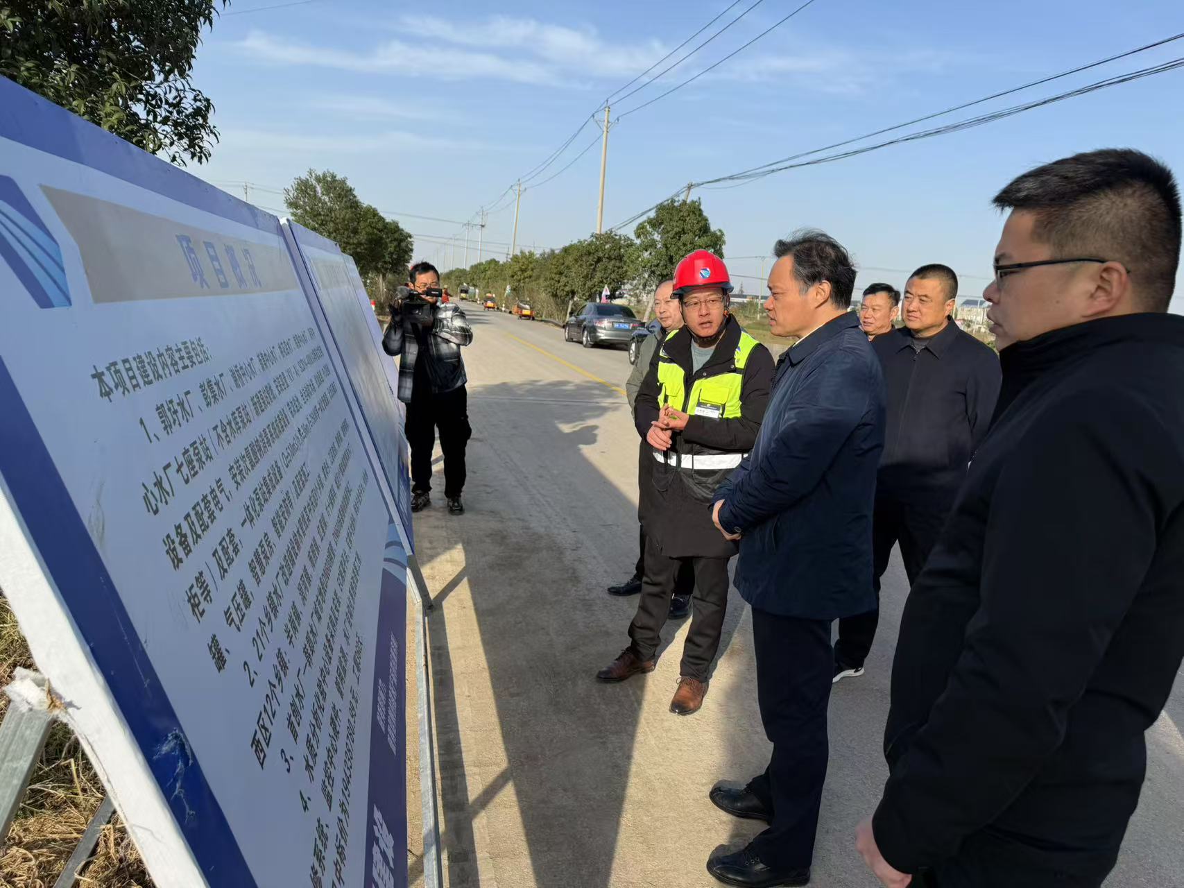 张银军书记一行来到阜阳市颍上县群众喝上引调水工程项目(四期)第一批次项目施工现场后,听取现场工作人员对工程进展情况的汇报,并对施工过程进行仔细检查。
