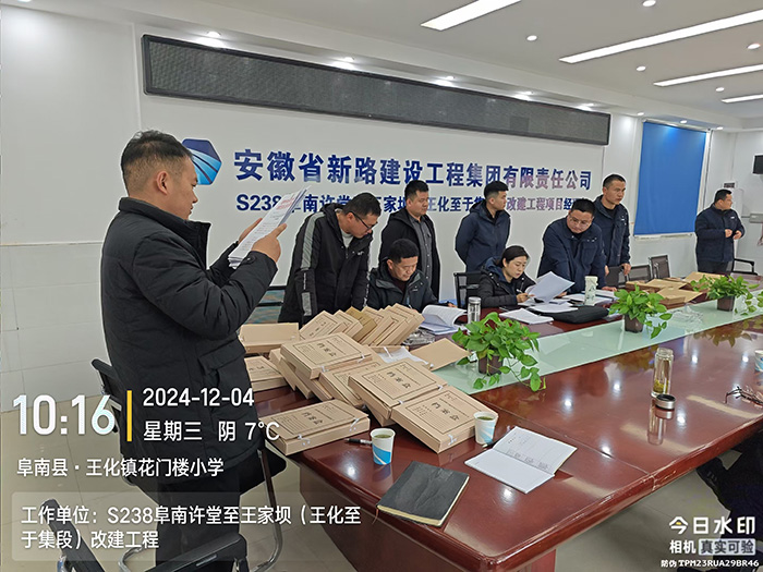 2024年12月4日,S238阜南王化项目部迎来了阜阳市质检中心以及阜南县交通运输局的视察与指导。此次检查由阜阳市质检中心,工程质量科科长郝宏焱带队,旨在深入了解工程进展、安全管理及质量把控等情况,为项目的顺利推进提供有力保障。