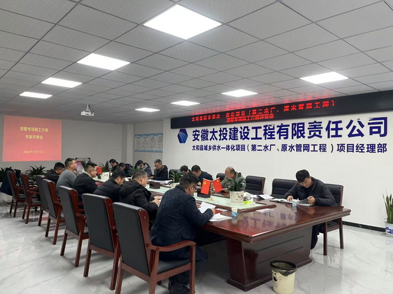 12月13日上午,太和县城乡供水一体化项目部组织召开太和县城乡供水一体化项目(第二水厂、原水管网工程)顶管专项施工方案评审会。太和县重点工程建设管理中心、辽宁城建设计有限公司、安徽太投建设工程有限责任公司以及受邀专家5位共同参加会议。