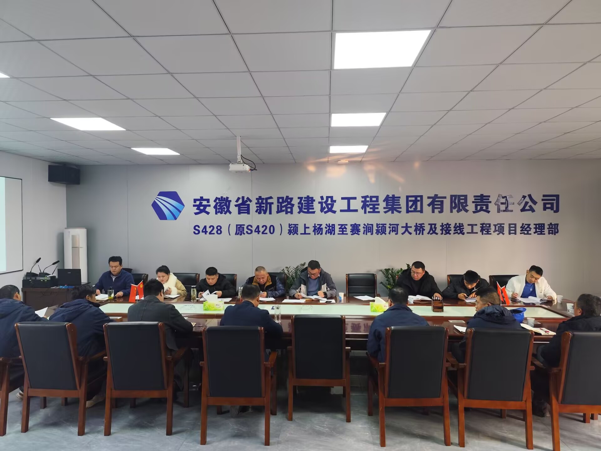 12月13日,S428颍上杨湖至赛涧颍河大桥及接线工程项目部召开主桥吊杆安装关键施工节点专项调度会,监理办总监姚卫邦出席并主持会议,项目部主要管理人员及各施工班组负责人参会。