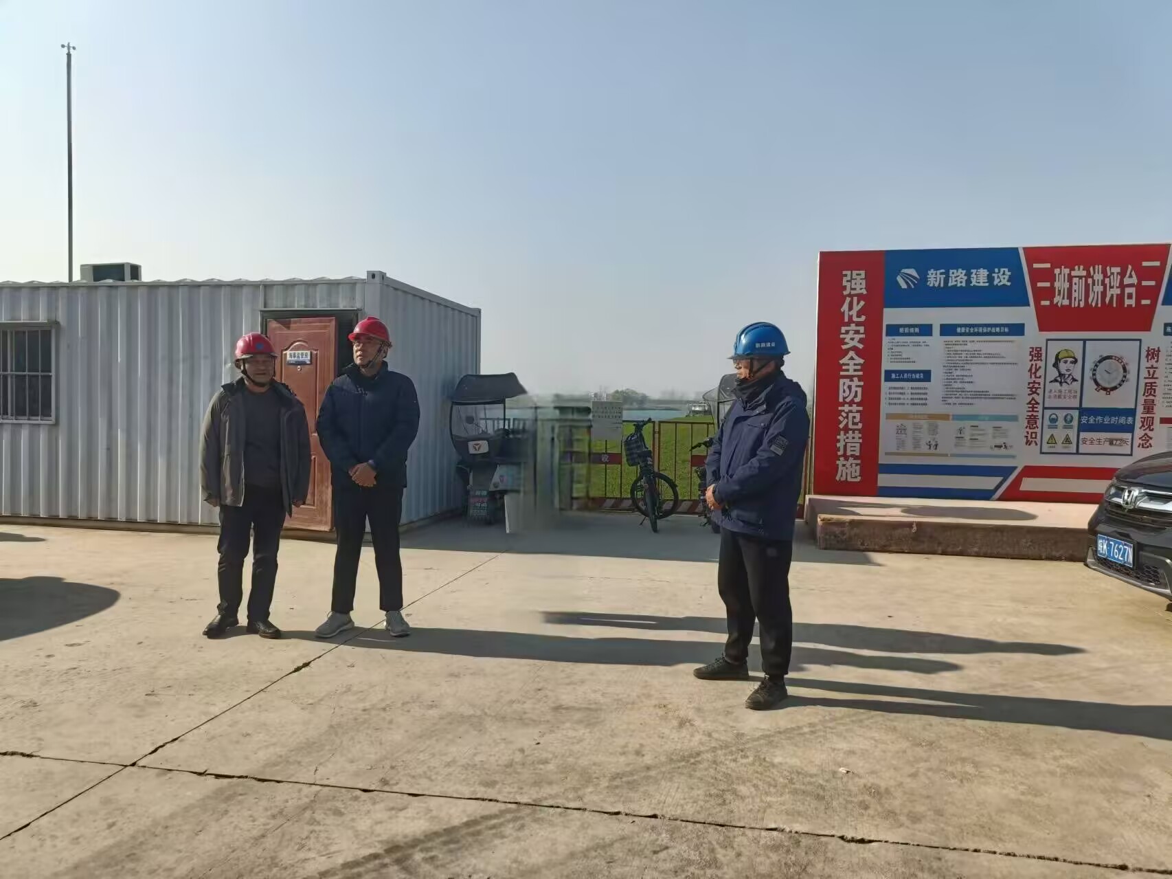 12月30日上午颍上交通能源投资建设集团有限公司董事长王光泽赴杨湖大桥项目检查指导工作,项目经理王如宝陪同检查。