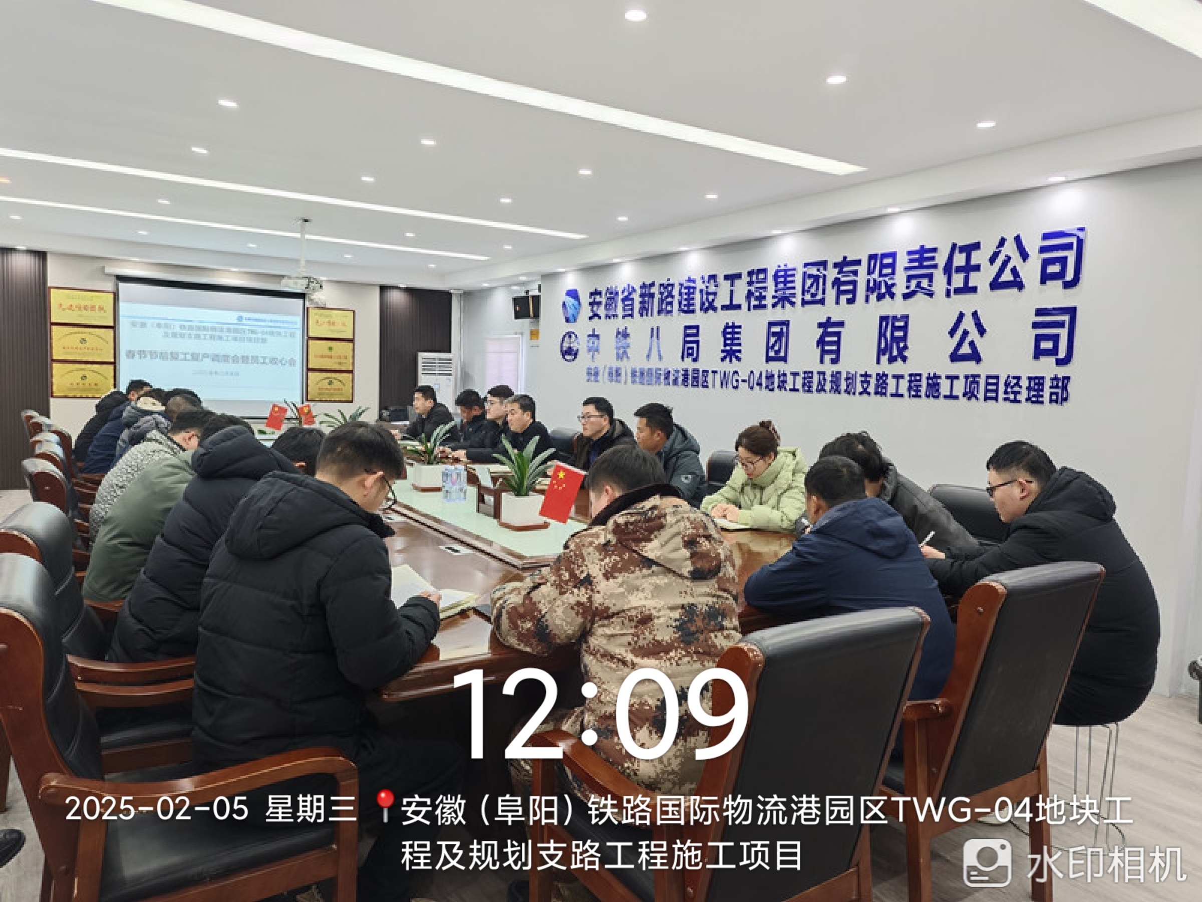 人勤春来早,复工正当时。2025年2月5日,安徽(阜阳)铁路国际物流港园区TWG-04地块工程及规划支路工程施工项目召开复工复产调度会暨收心会,动员全体职工迅速收心归位,督促各科室人员尽快到岗复工,认真抓好节后安全生产工作,为今年各项工作开好局、起好步。项目经理董国庆出席会议并作安排部署,项目全体职工参会。