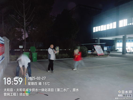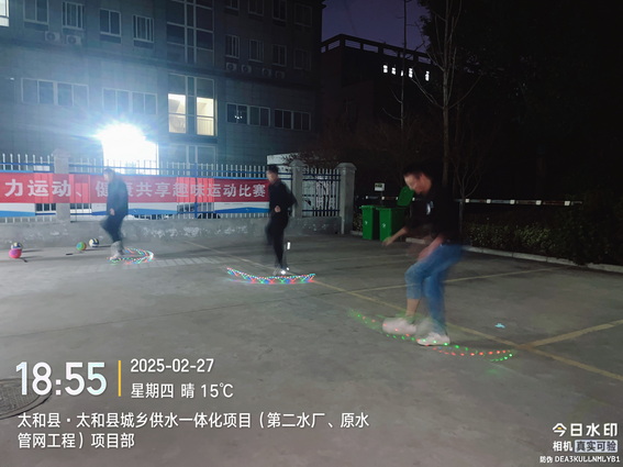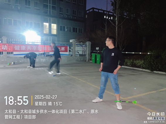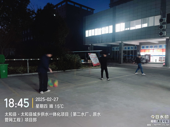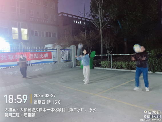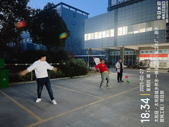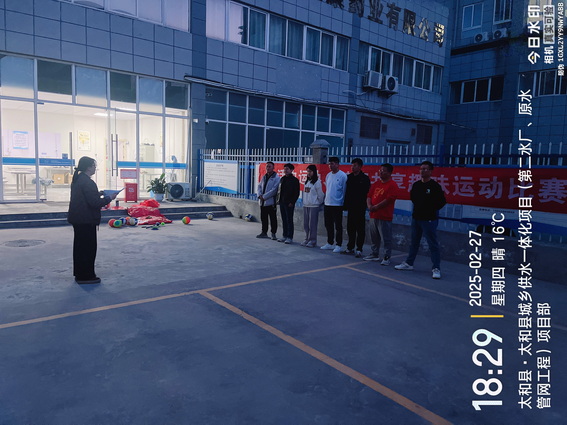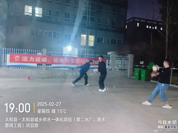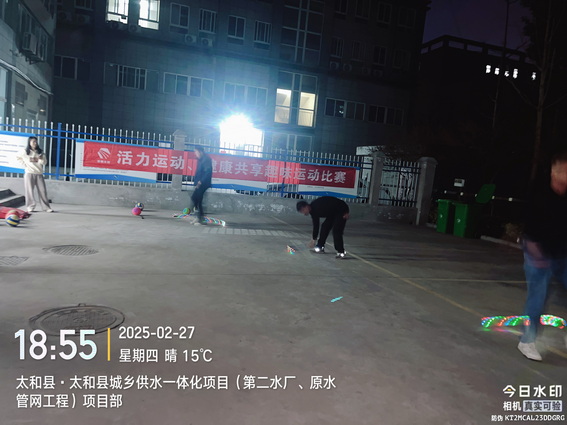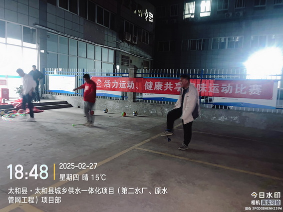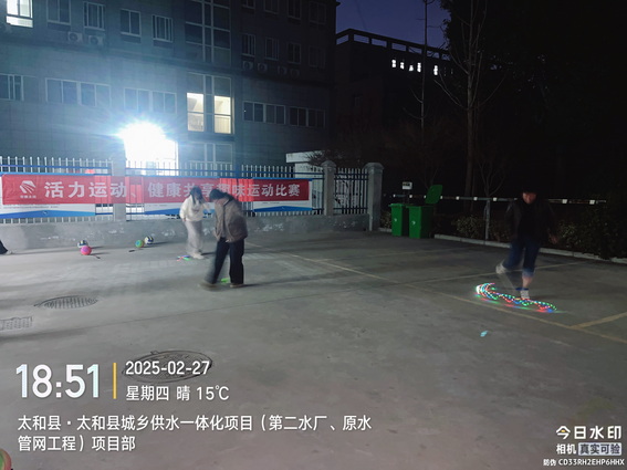 2月27日,太和供水一体化项目组织开展了一场别开生面的健身甩甩球、单脚甩腿跳跳球、垫排球趣味运动活动。此次活动旨在丰富员工的业余生活,增强团队凝聚力、向心力,展现员工积极向上的精神风貌。
