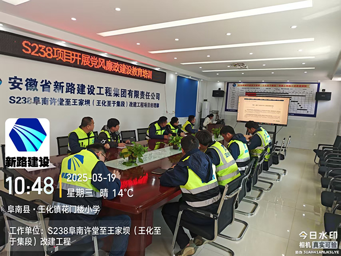 为进一步加强党风廉政建设,提升项目部员工的廉洁自律意识,2025年3月19日,S238项目部精心组织开展了一场意义深远的党风廉政建设培训。此次培训聚焦廉洁从业主题,旨在引导全体员工坚守纪律底线,营造风清气正的项目建设环境。