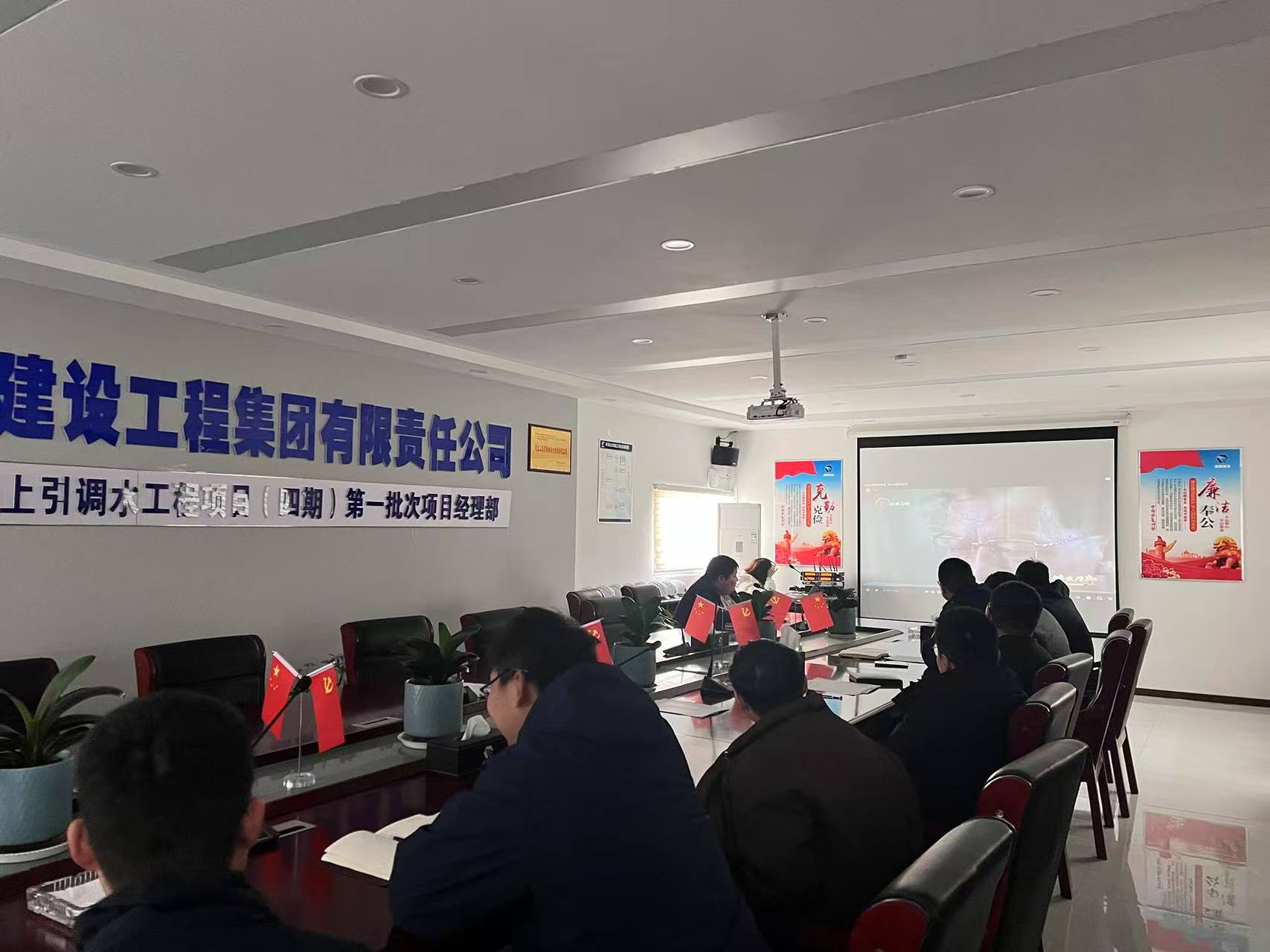 颍上引调水(四期)项目部2025年3月31日中午12:00在项目部会议室组织了一场以“筑牢思想防线,共筑清风项目部”为主题的廉政警示教育纪录片观看活动。