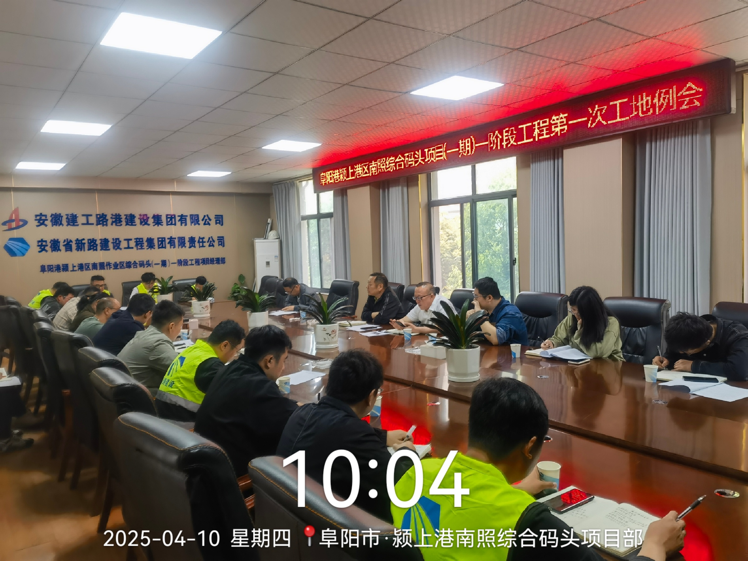 2025年4月10日上午,阜阳港颍上港区南照作业区综合码头(一期)一阶段工程首次工地例会顺利召开,标志着该项目正式进入实质性施工阶段。会议由项目建设单位代表白珂主持,施工、监理等单位项目负责人及相关人员参会,围绕工程推进的系统性部署展开深入研讨。