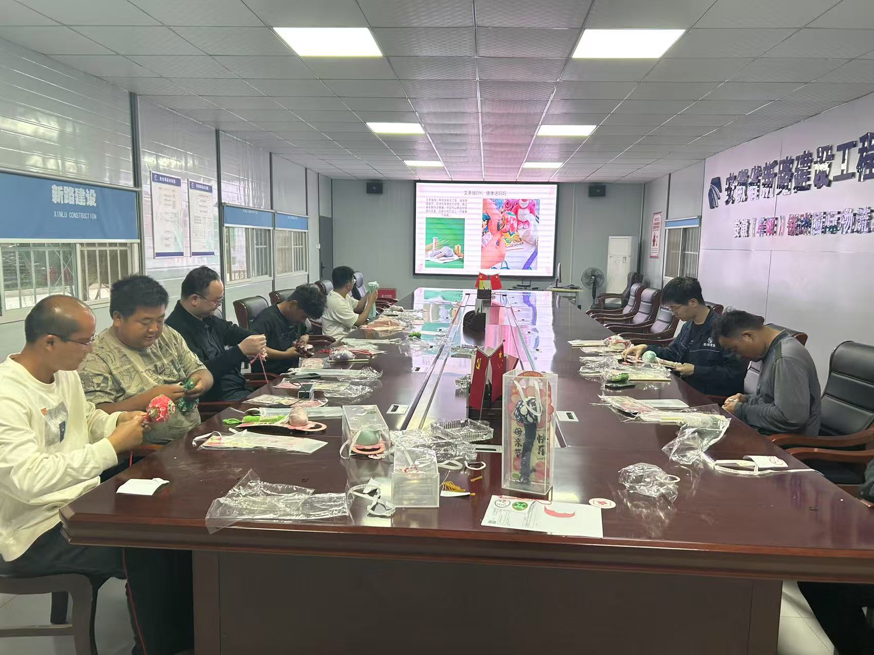 活动现场,项目部提前准备了充足的制作材料,布置得温馨而有序。活动伊始,员工们共同观看了艾草锤制作教学视频。观看完视频后,员工们纷纷拿起材料,迫不及待地动手制作起来。大家围坐在一起,时而互相探讨制作技巧,时而分享与母亲相处的温馨故事。有的员工是第一次做手工,动作略显生疏,但在同事们的帮助下,也渐渐掌握了要领;有的员工则展现出了心灵手巧的一面,缝制出的艾草锤不仅结实,还十分美观。现场气氛热烈而融洽,充满了欢声笑语。