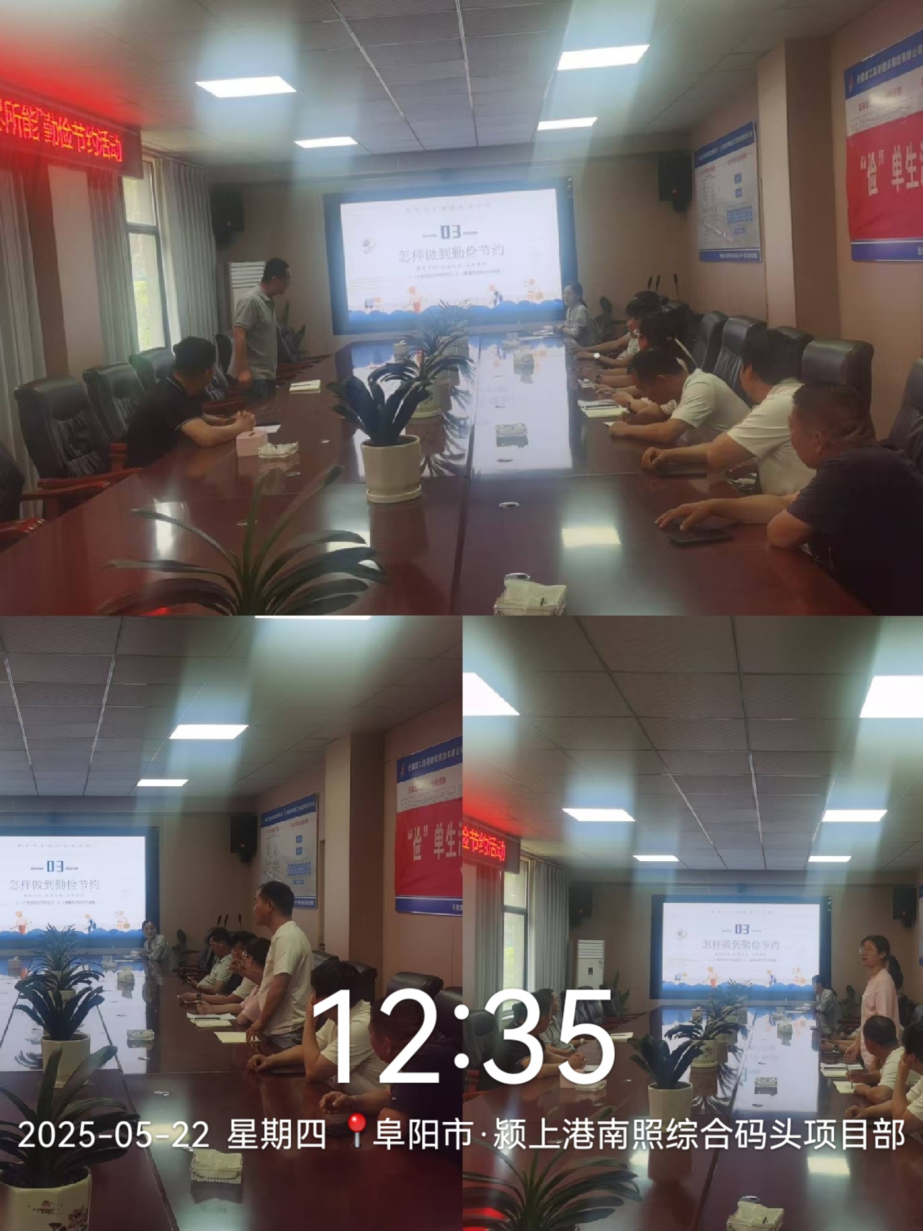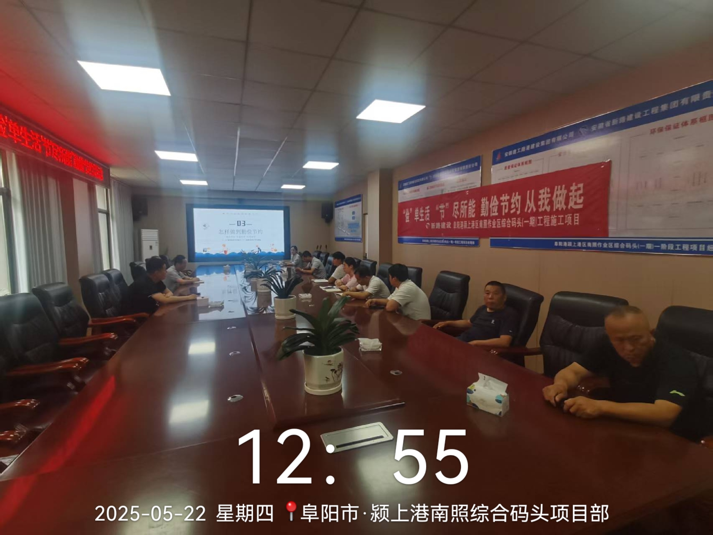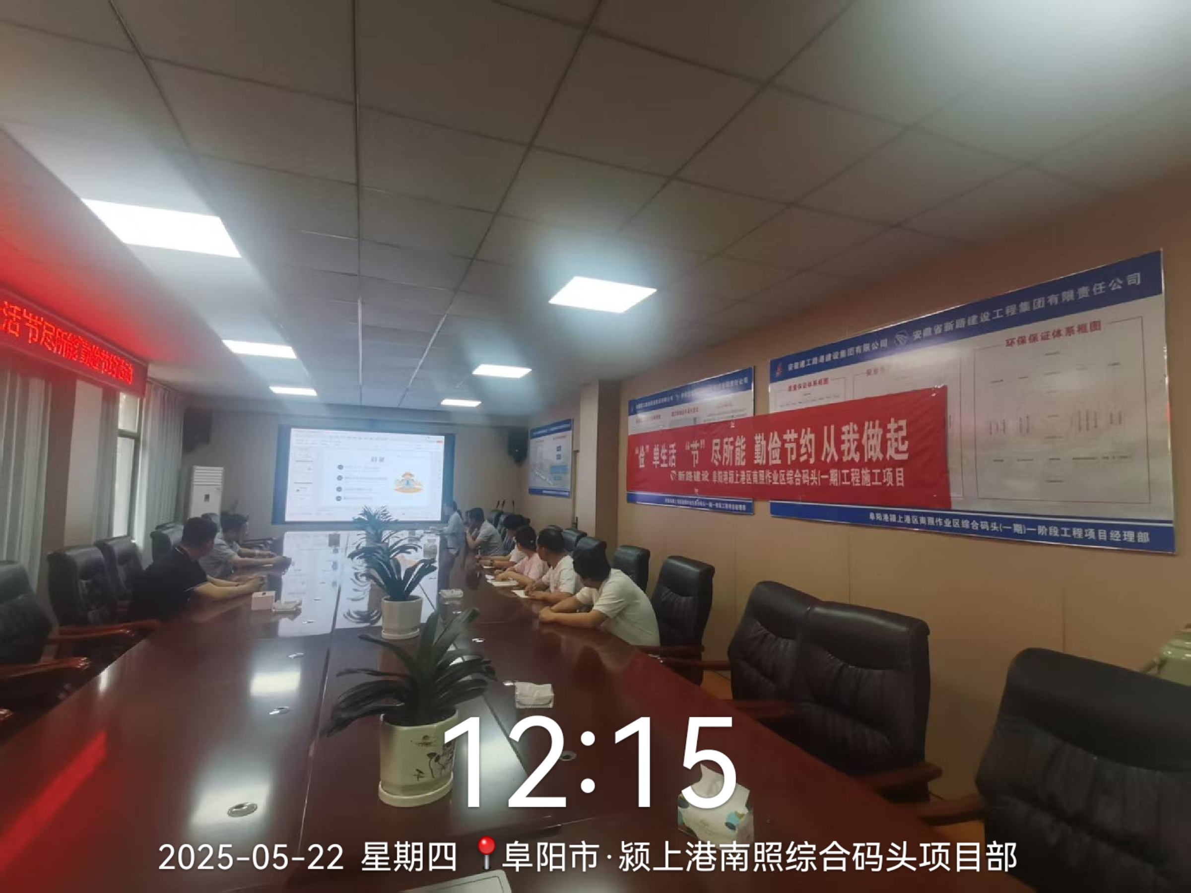 为深入贯彻中共中央有关"勤俭节约、反对浪费"的倡导,落实集团公司关于勤俭节约的工作要求,营造形成珍惜资源、反对浪费的团队文化氛围,强化员工的责任意识,5月22日中午,颍上港南照综合码头项目组织全体职工开展“‘俭'单生活 ‘节'尽所能”勤俭节约宣传活动。
