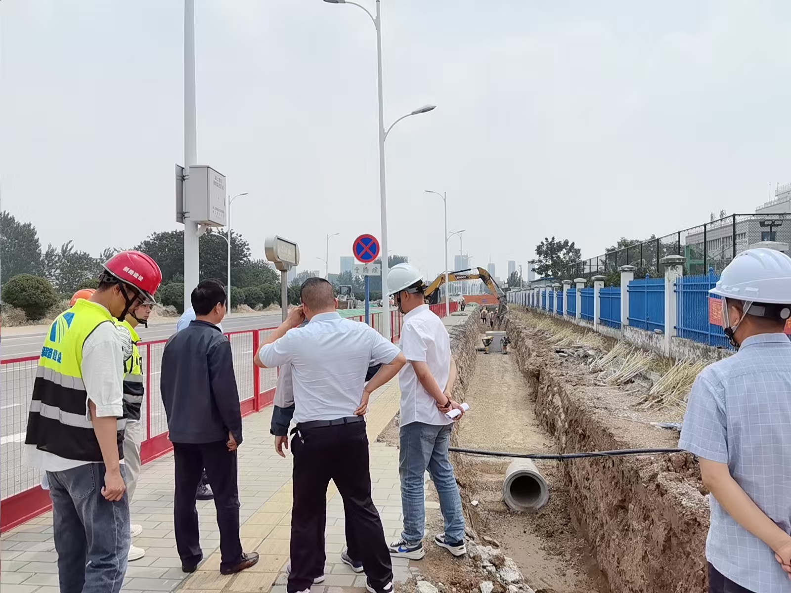 视察组一行来到颍上县东城区排水防涝项目现场,详细了解了项目的设计理念、施工进展及预期效果。通过实地查看和听取汇报视察组对该项目在提升城市防洪排涝能力方面所做的努力给予了高度肯定。随后,对管网的结构、布局进行了细致检查。他们发现施工现场警示警告标志、标牌设置不足等问题,已及时记录并督促相关单位尽快整改。