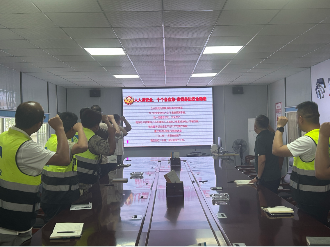 项目部全体管理人员参与,标志着为期一个月的安全生产专项活动正式拉开帷幕。全体参会人员庄严宣誓,承诺遵守安全规章制度,履行岗位安全职责,并在主题横幅上签名,以实际行动践行安全生产责任。项目部将以此次活动为契机,推动安全生产常态化、标准化,为工程高质量建设保驾护航。