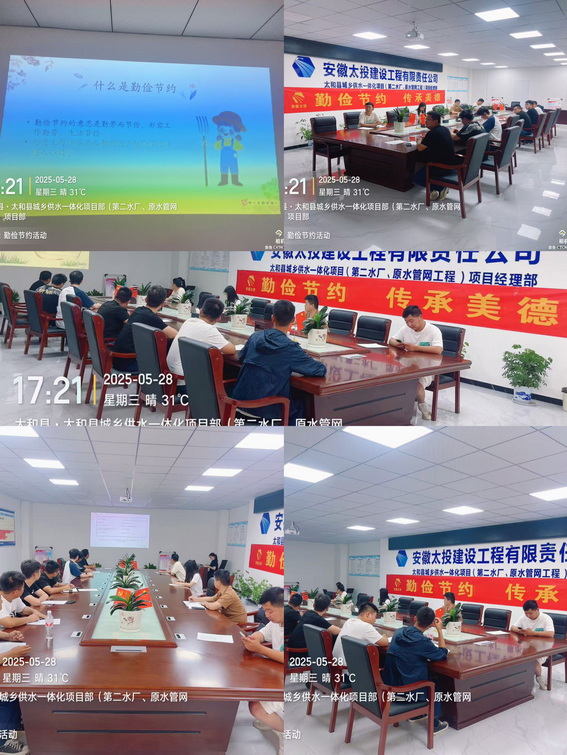 勤俭节约是中华民族的传统美德,也是现代社会可持续发展的重要理念。为深入贯彻落实绿色发展理念,5月28日下午,太和供水一体化项目组织开展“勤俭节约,传承美德”主题宣传活动,引导项目员工树立节约意识,养成绿色低碳的生活方式。