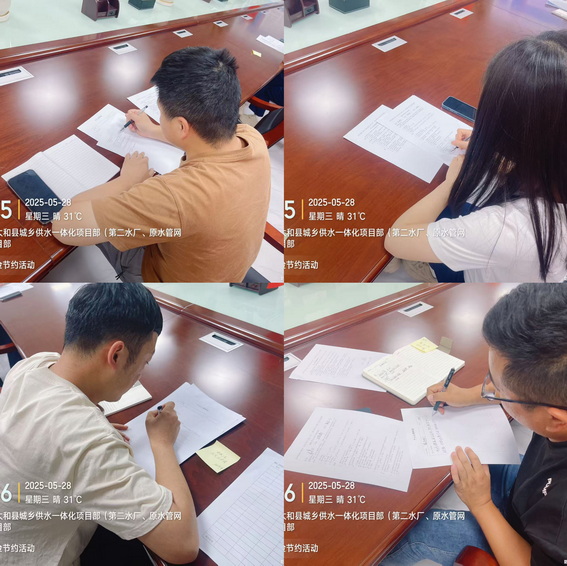 除了节约粮食,节水、节电、减少一次性用品使用也成为项目部关注的焦点。综合办公室通过发放个人节约承诺书、举办PPT课件学习、观看勤俭节约短视频、写宣传标语、问卷调查、集体倡议宣誓等方式,向项目全体成员普及节粮、节能知识。比如:生活中许多家庭开始注重循环利用,如用淘米水浇花、合理使用空调、随手关灯、减少塑料袋使用等。现场随机抽取一位人员表示:“节约不是抠门,而是让资源发挥最大价值,减少不必要的消耗。”