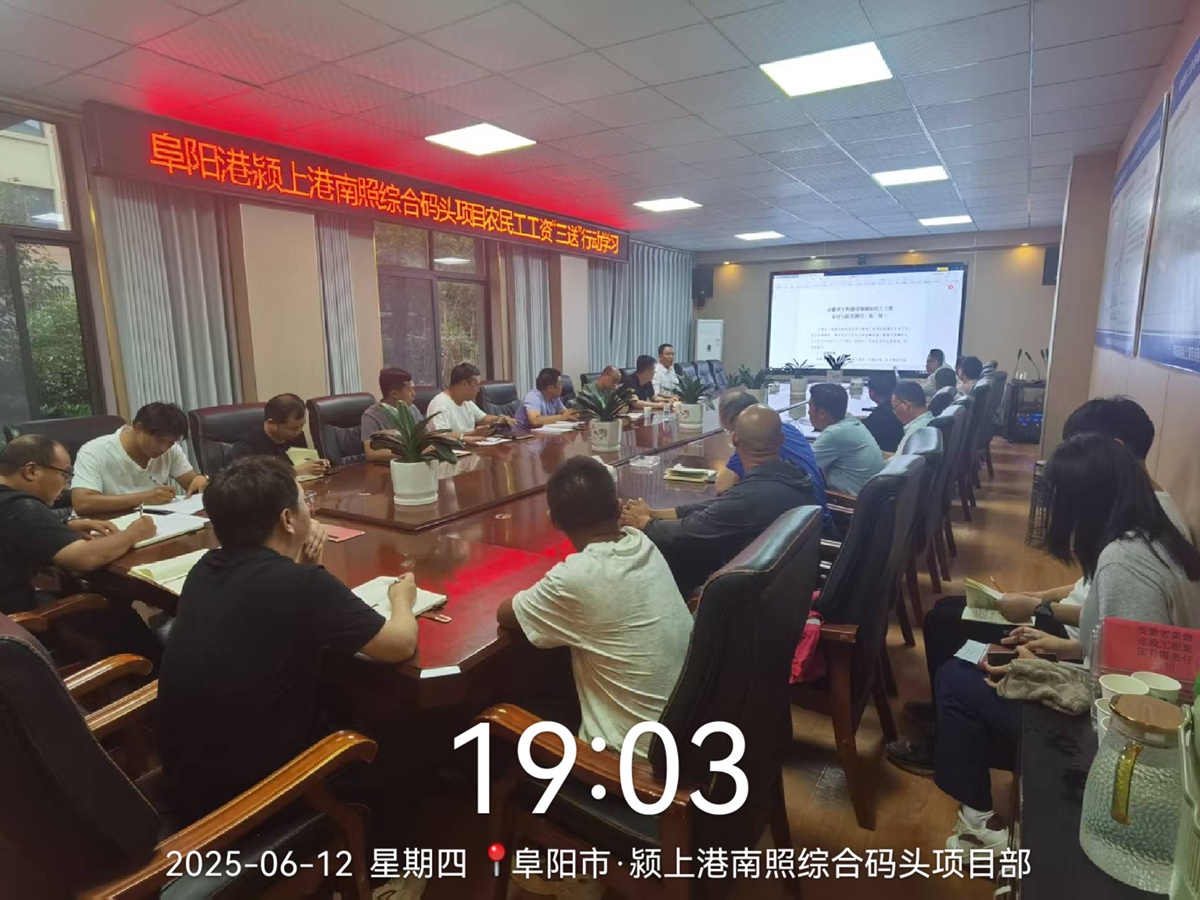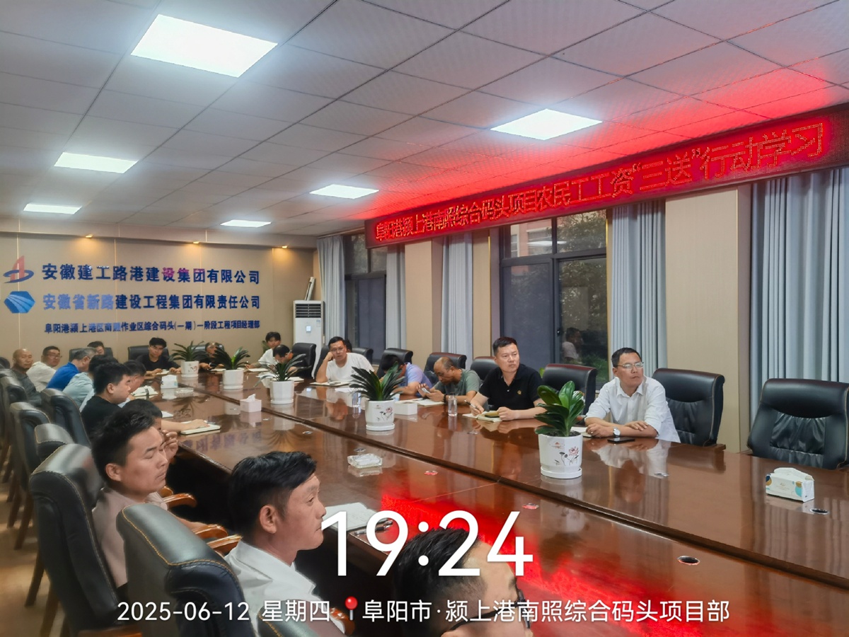 为进一步规范农民工工资管理,切实保障农民工合法权益,6月12日晚19点,颍上港南照综合码头项目在项目部会议室组织开展农民工工资“三送”行动专题培训,本次培训邀请了安徽淮河阜阳港有限公司安全管理部陈孝武担任主讲,安徽省路兴建设项目管理有限公司总监理工程师李洋、颍上港南照码头项目部姚勇、王鹏等相关管理人员及各施工班组负责人共同参加专题学习。