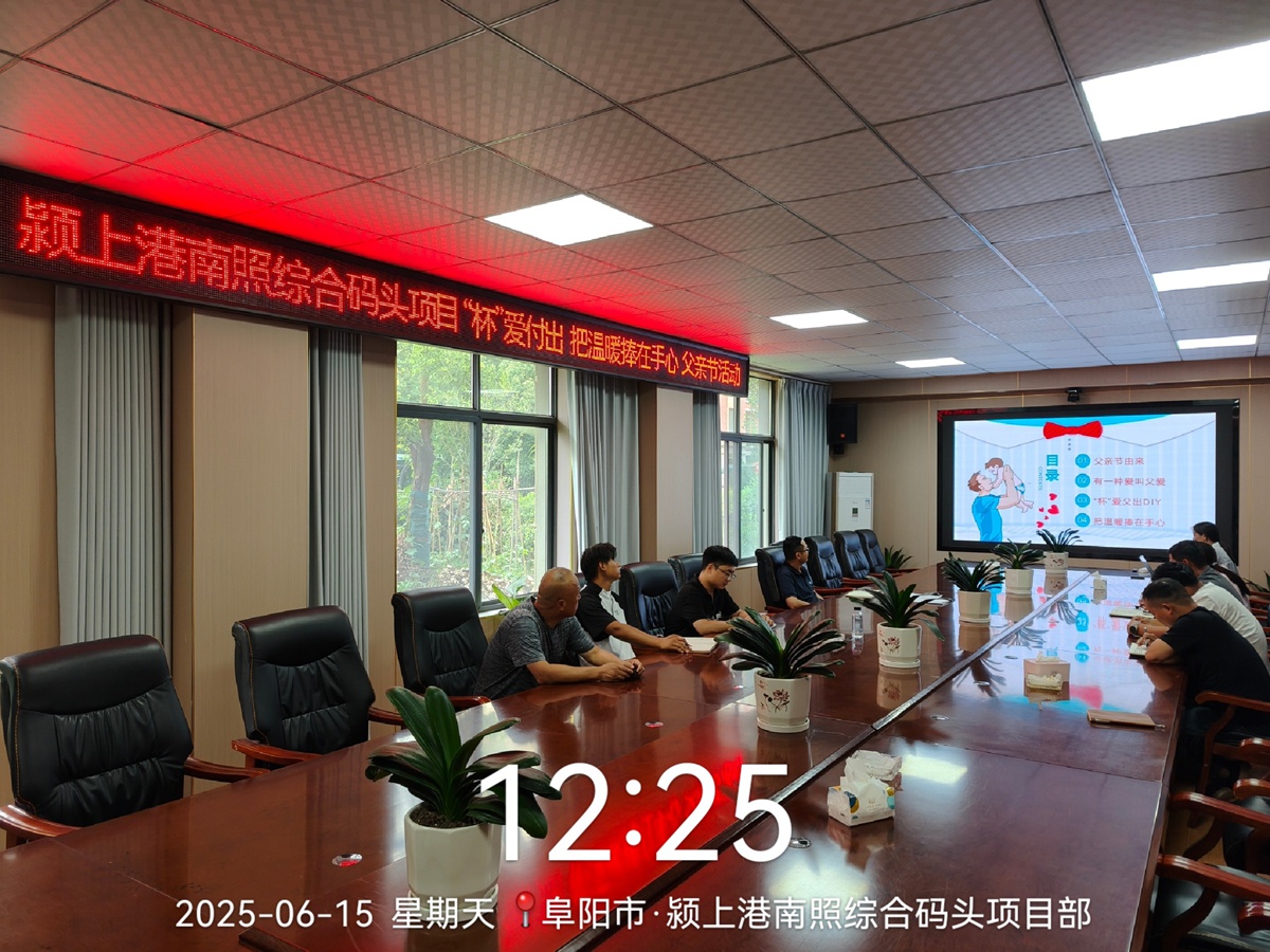 为弘扬中华民族孝亲传统,增进员工情感交流,提升团队凝聚力,6月15日父亲节当天,颍上港南照综合码头项目组织开展了“‘杯’爱父出 把温暖捧在手心”感恩父亲节主题活动。