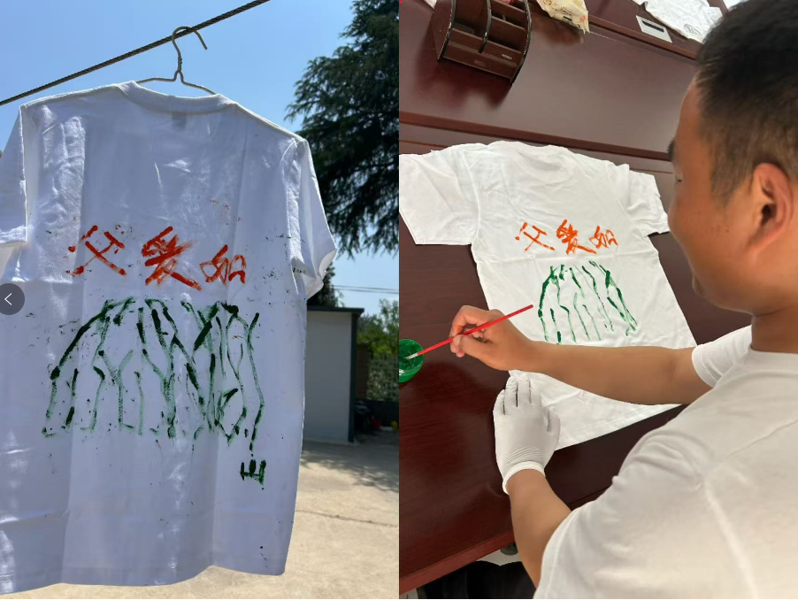 活动现场准备了纯白T恤、环保颜料及绘画工具。员工们用心设计图案,有的手指按压简单勾勒,有的书写"父爱如山"等暖心标语。此次活动既锻炼了职工的动手能力,也搭建了亲情沟通桥梁。参与的职工纷纷表示,要把活动中的感动转化为日常陪伴,让父爱陪伴成为家风传承的温暖力量。