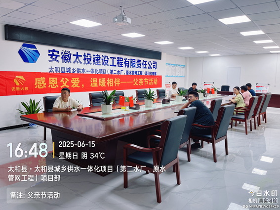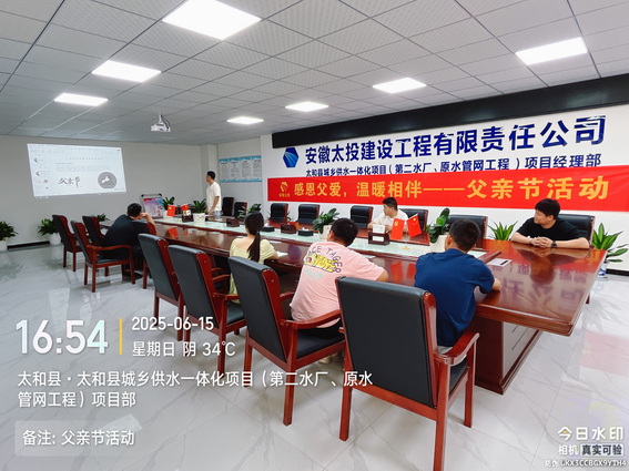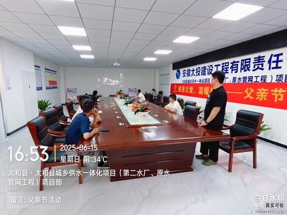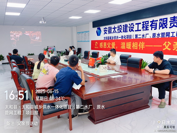 为弘扬中华民族孝亲敬老的传统美德,增进父子情感交流,6月15日下午,太和供水一体化项目组织全体职工开展以“感恩父爱,温暖相伴”为主题的感恩父亲节活动。