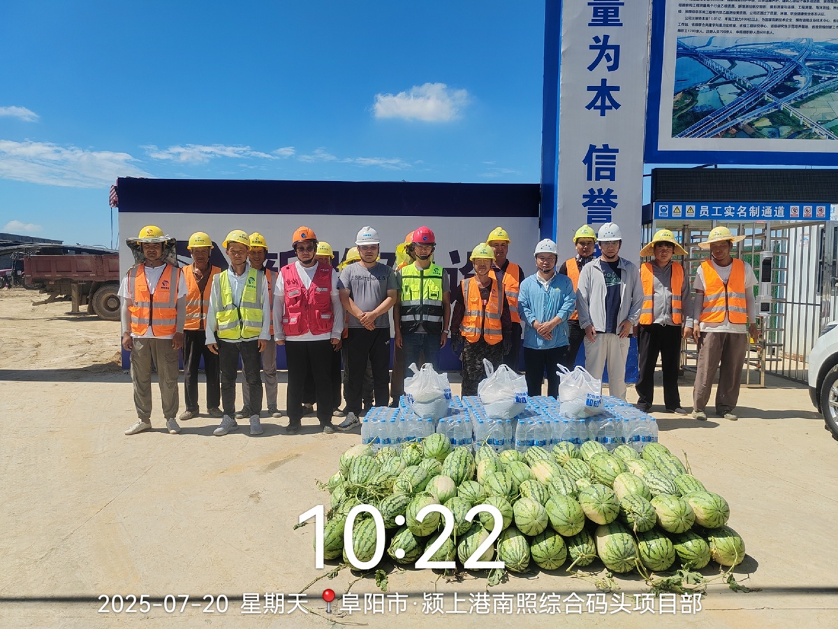 此次慰问活动不仅送去了物质清凉,更极大鼓舞了一线人员的士气。下阶段,颍上港南照综合码头项目部将持续加强高温天气应急管理,深化安全生产专项整治成果,以更高要求落实安全生产责任,全力冲刺后续建设目标,保质保量完成每一阶段的任务。