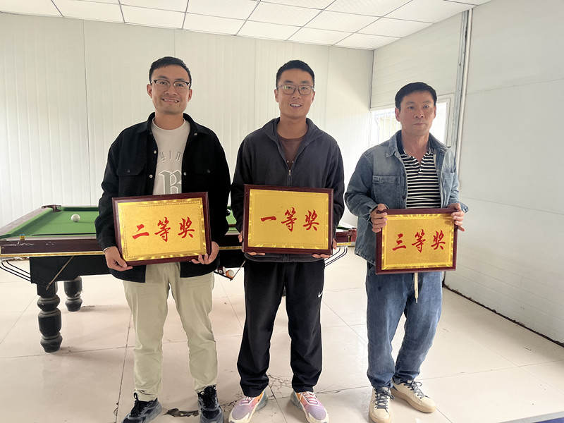 经过激烈的角逐,最终决出了一、二、三等奖各一名,同时设有参与奖若干名。比赛结束后,项目部为参赛选手颁发了奖品。此次台球比赛活动的成功举办,不仅丰富了项目部员工的业余生活,还增强了员工之间的交流与合作,展现了项目部员工积极向上、团结奋进的精神风貌。项目部今后将继续举办更多类似的文体活动,为员工提供更多的交流和展示平台,进一步提升员工的幸福感和归属感。