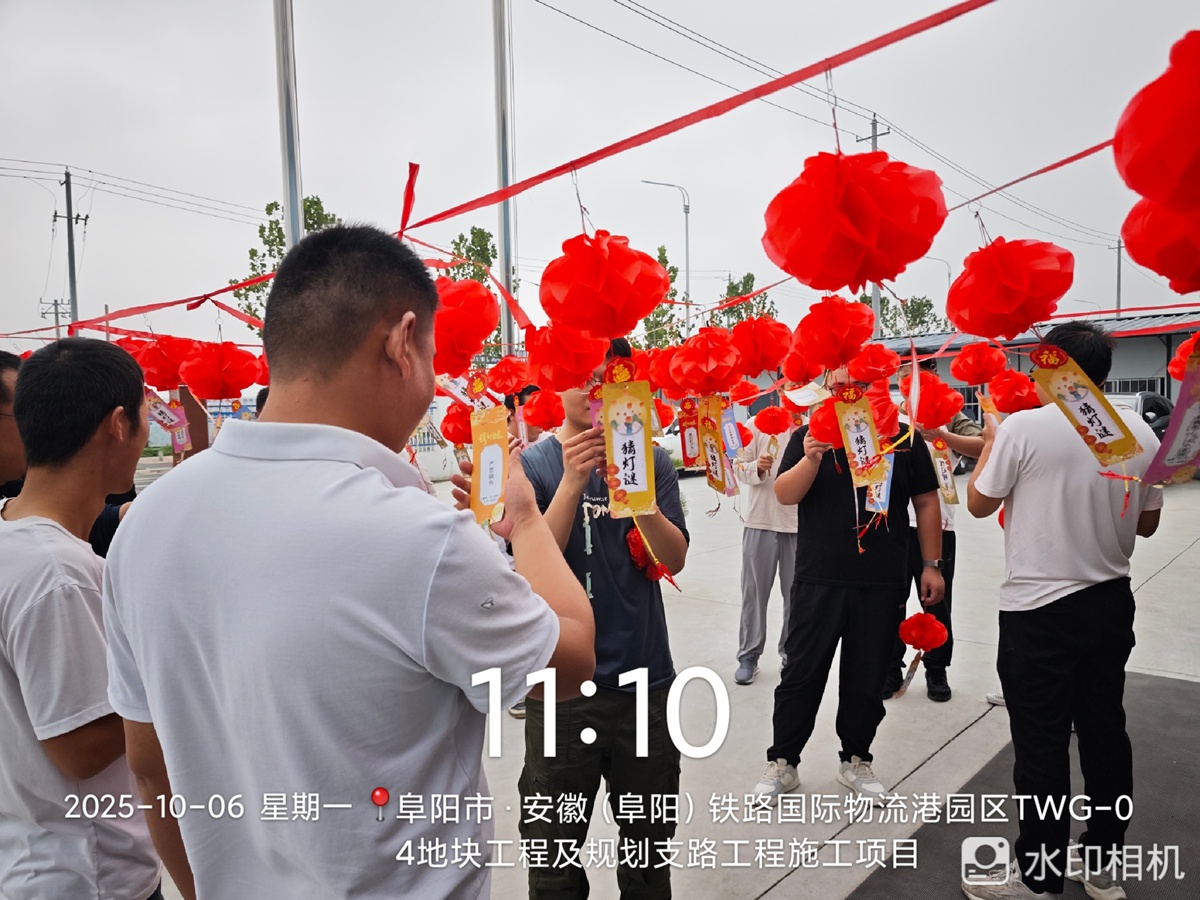 中秋佳节来临,铁路物流港园区项目于2025年10月6日精心组织了“月圆情浓迎中秋,趣味灯谜乐团圆”主题灯谜活动,让坚守在施工一线的员工们度过了一个欢乐祥和的节日。
