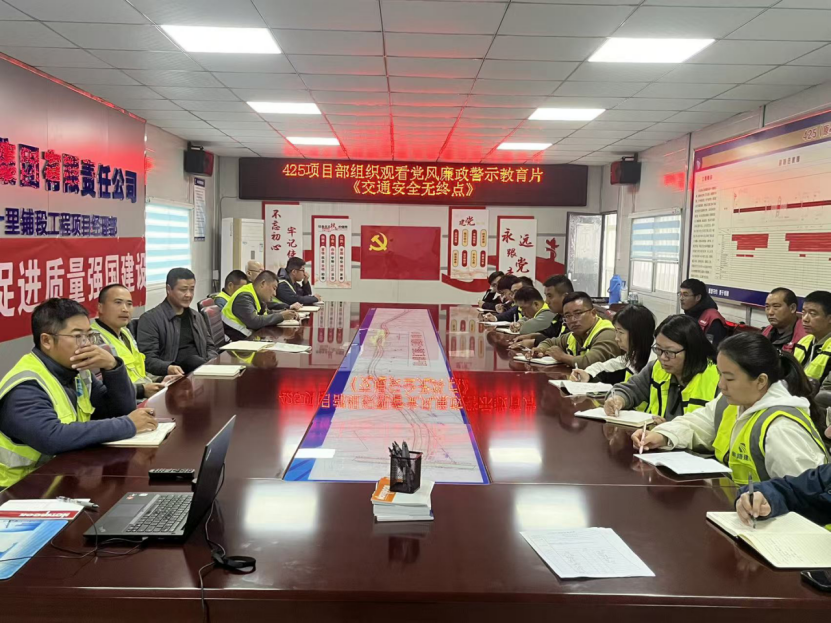 10月16日,425项目部组织全体员工集中观看党风廉政警示教育片《交通安全无终点》,此次活动由项目经理王震主持,旨在通过真实案例的警示,进一步强化员工的廉洁自律意识,筑牢拒腐防变的思想防线。