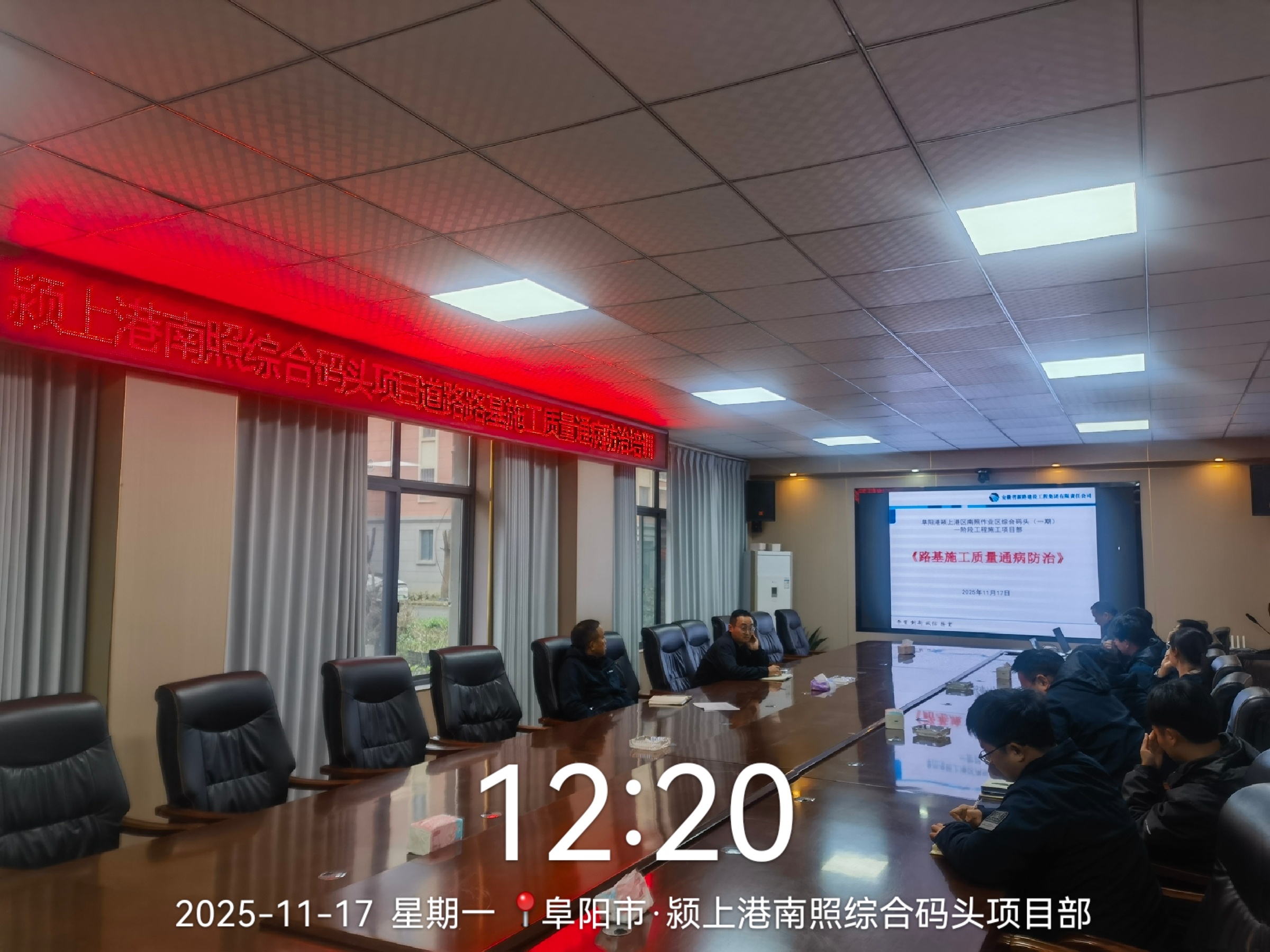 为全面提升现场质量管理水平,筑牢工程质量根基,11月17日中午,颍上港南照综合码头项目精心组织开展了“道路路基施工质量通病防治”专题培训,项目部管理人员及技术骨干均参加了此次学习。