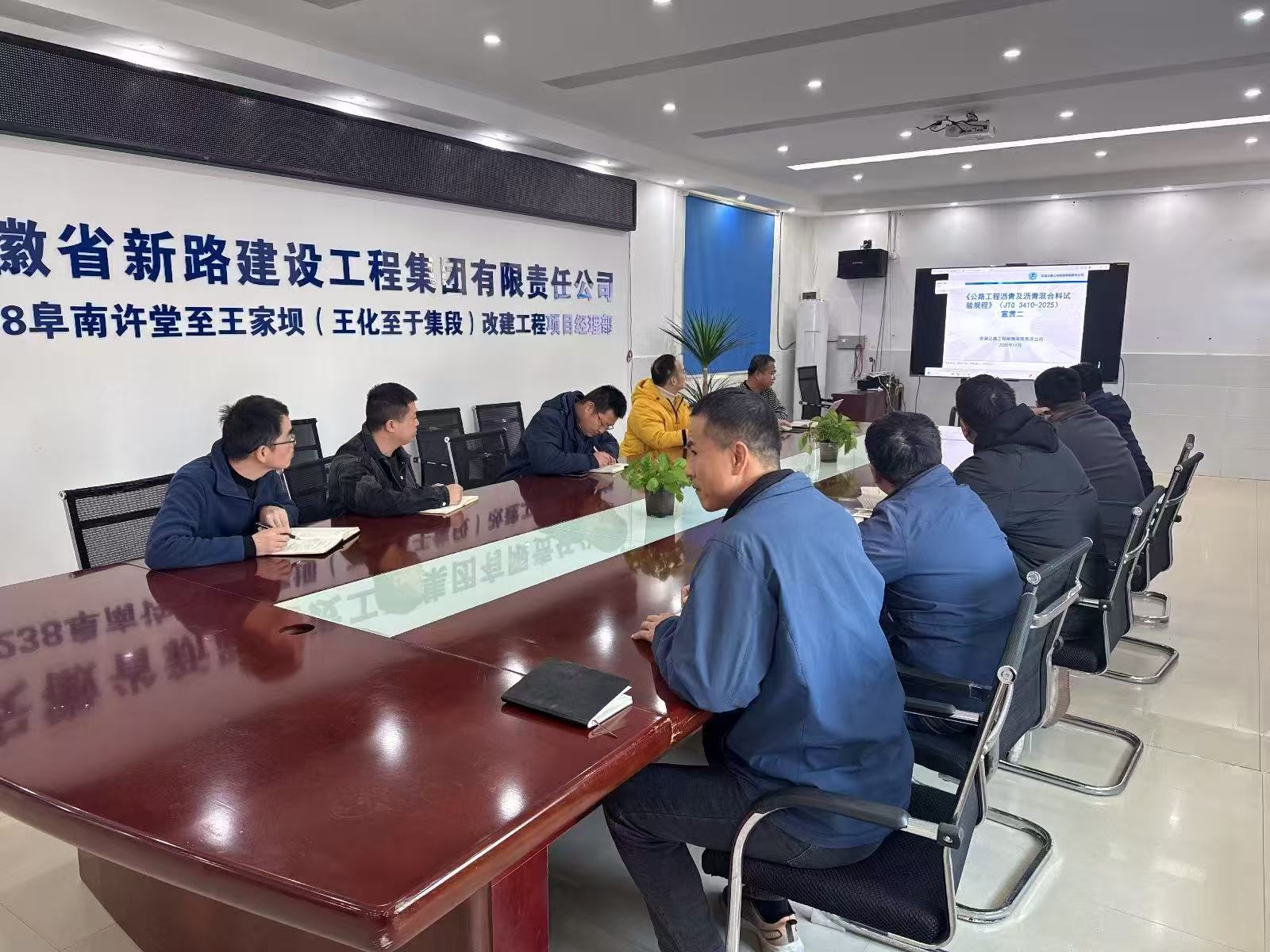 为落实交通运输部新施行的《公路工程沥青及沥青混合料试验规程》(JTG 3410-2025),打破部门知识壁垒,11月21日,S238阜南许堂至王家坝(王化至于集段)改建工程项目部组织专项培训,11名来自总工室、工程科、安全科、核算科等科室的工作人员参训。