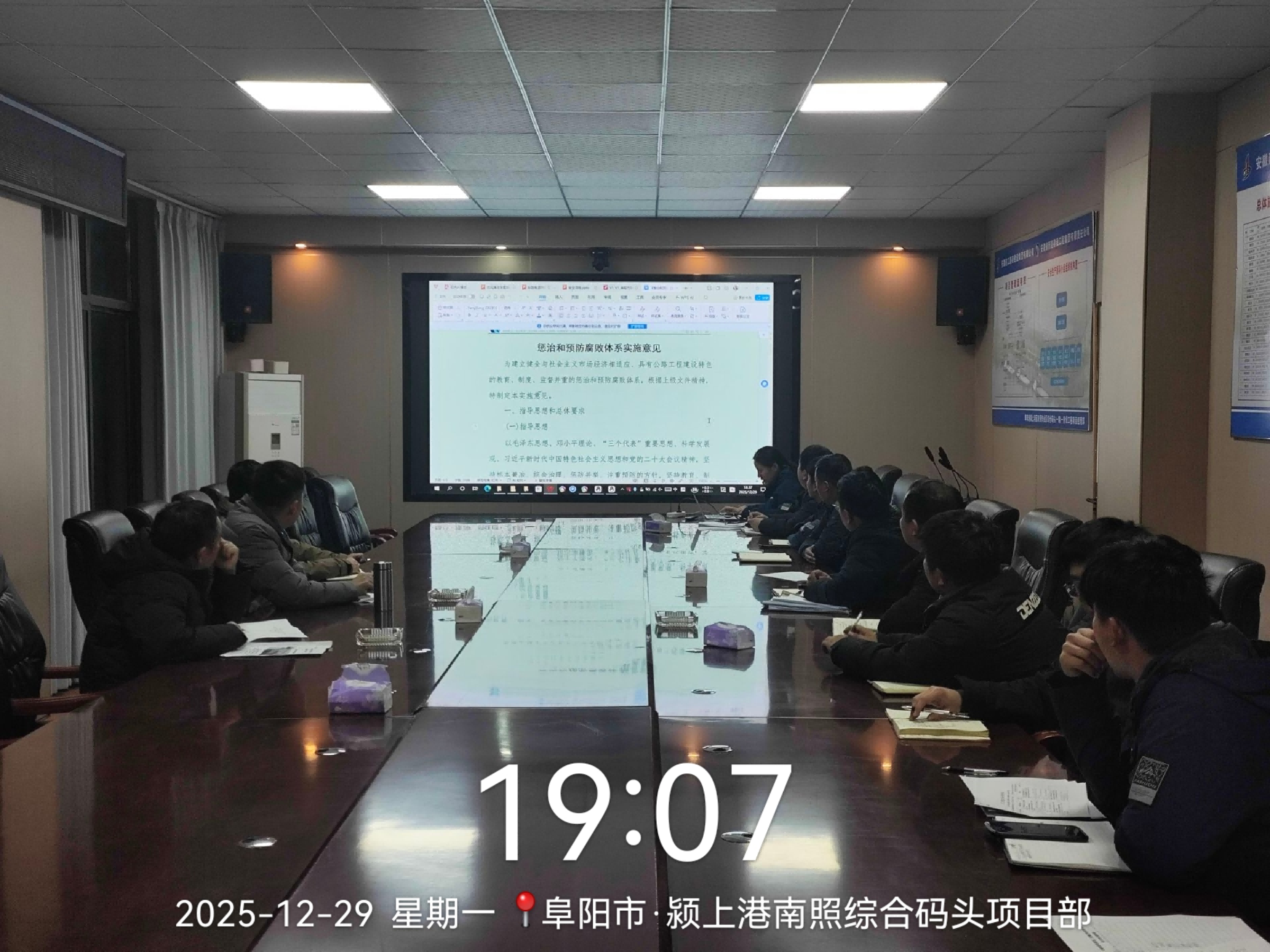 为进一步强化廉洁从业意识,筑牢拒腐防变思想堤坝,12月29日晚,颍上港南照综合码头项目组织开展了系列专题学习教育活动,将党风廉政建设与严格落实过紧日子要求深度融合,为项目高质量发展注入廉洁动能。