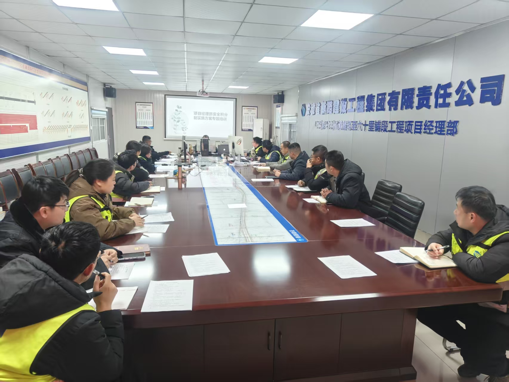 为强化项目安全管理,提升全员安全意识,1月27日下午,425项目部组织开展了安全积分实施方案、流动安全红旗评选知识专题培训。项目经理王震主持培训,项目全体员工参加,安全科负责人李朋担任主讲。