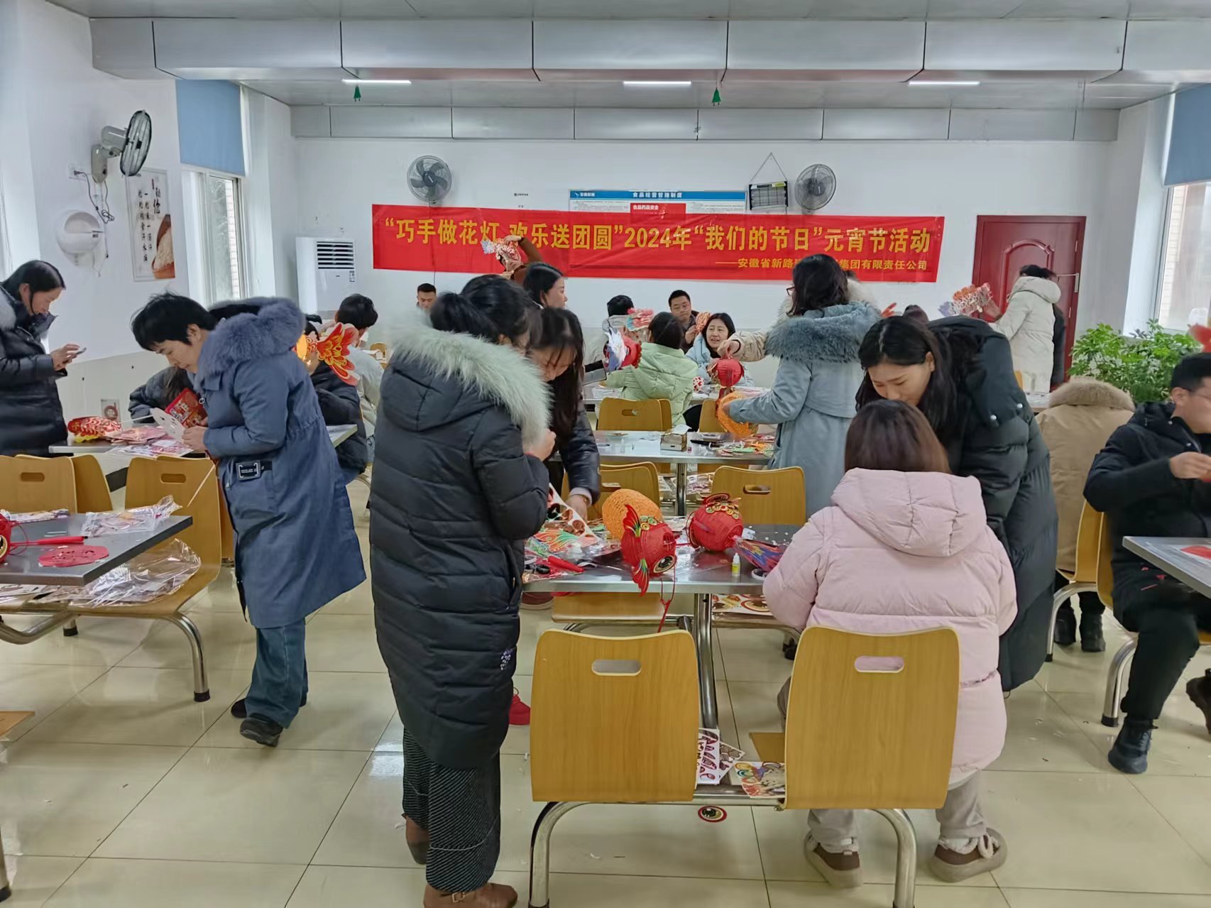 元宵节来临之际,2月21日,mansion88明升集团在职工食堂开展“巧手做花灯,欢乐送团圆”2024年“我们的节日”元宵节活动。