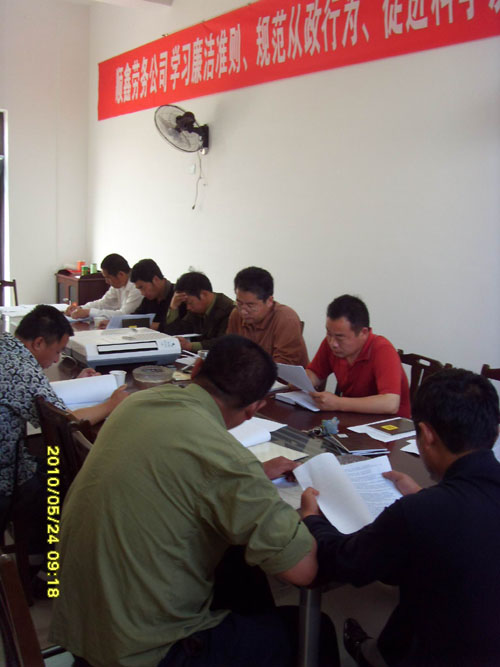 5月24日上午,顺鑫工程劳务公司召开“学习《廉政准则》、规范从政行为、促进科学发展”主题教育活动动员会。劳务公司全体党员及管理人员参加了会议。会议由张春喜经理主持。