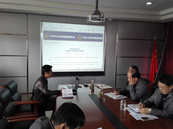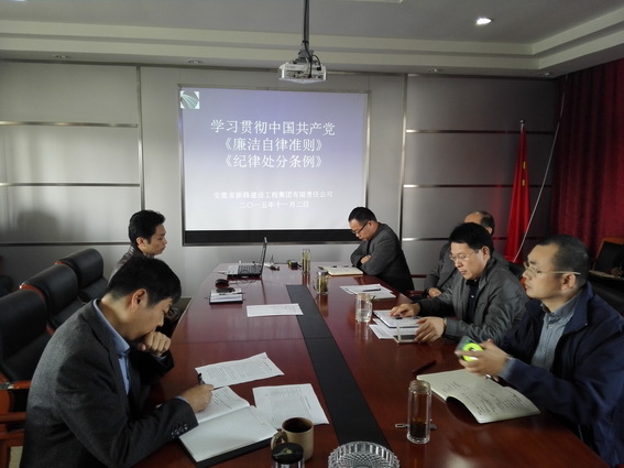 2015年11月2日上午,mansion88明升集团党总支组织学习党中央最新印发的《中国共产党廉洁自律准则》和《中国共产党纪律处分条例》,总支委员及集团公司各支部书记、党员代表参会。