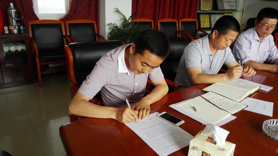 2016年5月6日上午,集团公司董事长唐谦、副总经理郝智明、崔勇在公司三楼会议室,对城南新区阜康路、南京路道路及附属工程项目部项目经理张仕龙、项目副经理马开成、项目总工余艮乐进行了廉政约谈,并签订了项目廉政合同。要求项目部在抓好工程进度和质量的同时,落实公司廉政制度,做好廉政建设工作。