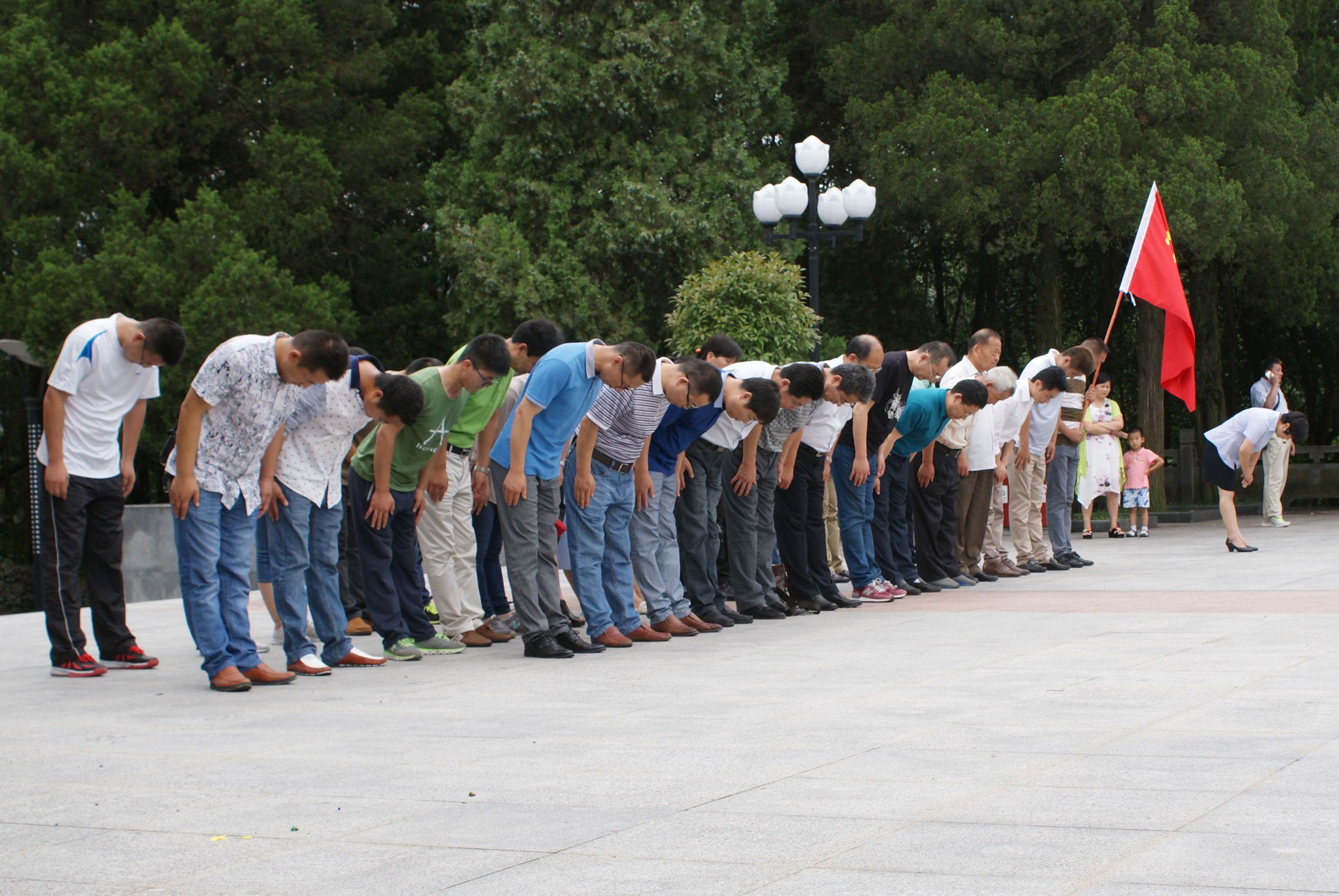 在烈士纪念塔前,向革命先烈鞠躬、默哀