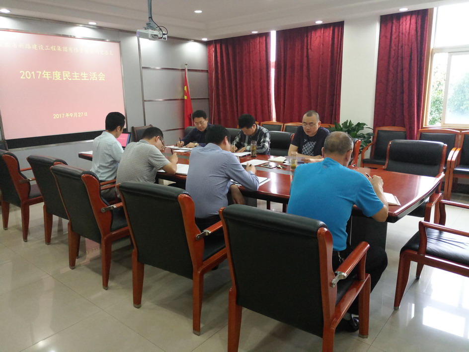 2017年9月27日上午,mansion88明升建设集团党总支在公司三楼会议室召开“讲政治、重规矩、作表率”民主生活会。会议由集团公司党总支书记唐谦同志主持,交投公司监事会主席江玉友同志、集团公司党总支委员参加会议。