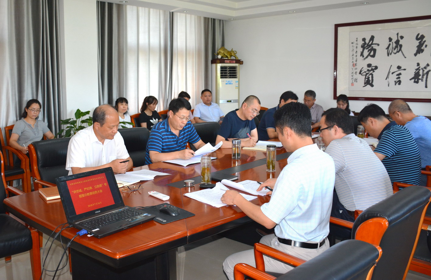 7月16日上午,集团公司党总支召开“讲忠诚、严纪律、立政德”专题警示教育动员会,总支书记唐谦主持,总支委员、下属支部书记及各部室负责人参加会议。