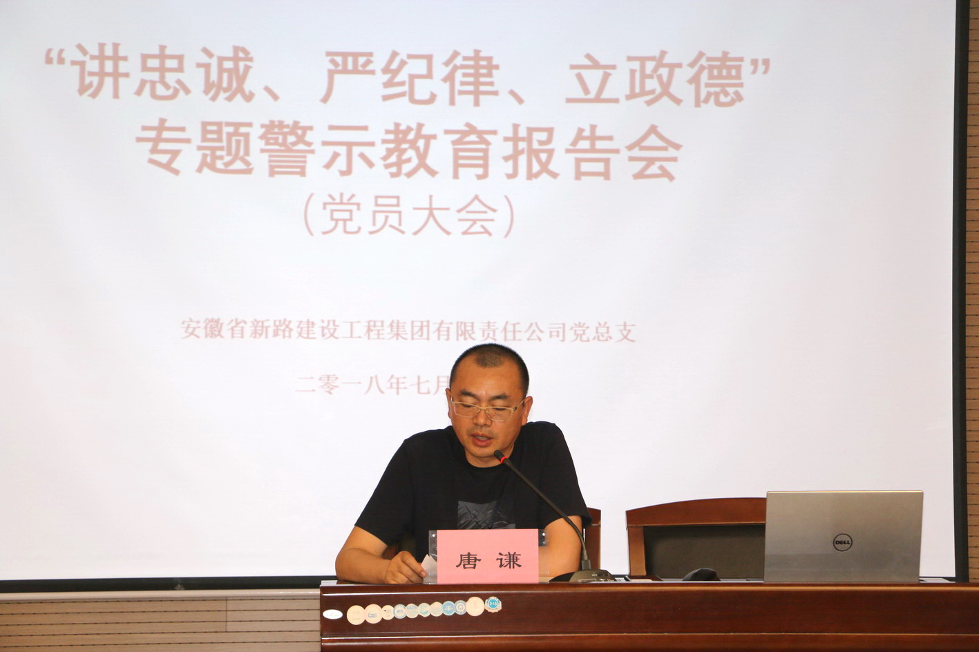 7月30日下午,mansion88明升建设集团党总支在五楼会议室召开了“讲忠诚、严纪律、立政德”专题警示教育报告会,总支党员及公司相关部门负责人参加会议。