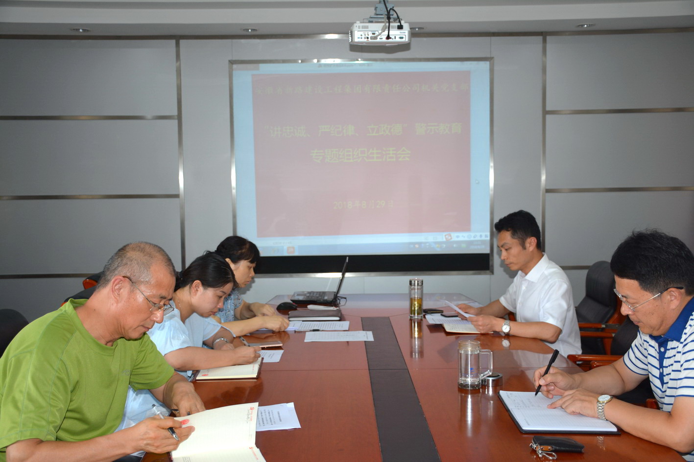8月29日下午,机关党支部召开“讲忠诚、严纪律、立政德”专题教育组织生活会,会议由支部书记崔勇同志主持,党总支副书记韩恒忠同志及全体委员参加会议。