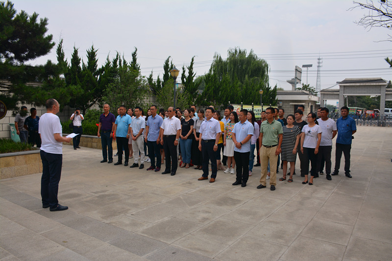 魏野畴烈士纪念馆,两边青松翠柏环抱,庄严肃穆。活动中,全体党员整齐的站在魏野畴烈士雕像前,向烈士敬献花篮,寄托深切哀思;在党总支副书记韩恒忠同志带领下重温了入党誓词,表达继承先烈遗志,牢记党的宗旨,克难攻坚,奋力工作的信心与决心。党总支书记唐谦同志为党员干部现场上了一堂《缅怀先烈,弘扬红色文化,强化意识形态教育》党课,要求大家继承先烈遗志,不忘初心,牢记使命,弘扬社会主义主旋律,积极自觉践行社会主义核心价值观,把做好意识形态工作作为重大政治任务,做好意识形态工作的引导员、监督员、宣传员,牢牢占据意识形态新高地。