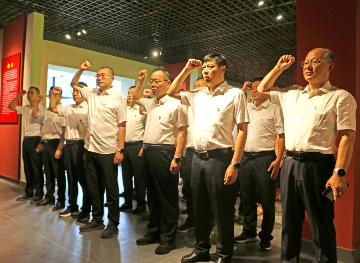 活动中,大家走进程文炳旧居,学习这位皖军名将的爱国事迹,感受程氏父子的家国情怀,参观宅院内党史图片展,追忆阜阳革命先驱在建党历程中的历史贡献和当年革命先烈抗敌斗争的峥嵘岁月。随后,在党史图片展馆内举行了重温入党誓词仪式。全体党员面对鲜红的党旗,再次用铿锵誓言表达了对党的热爱和忠诚。