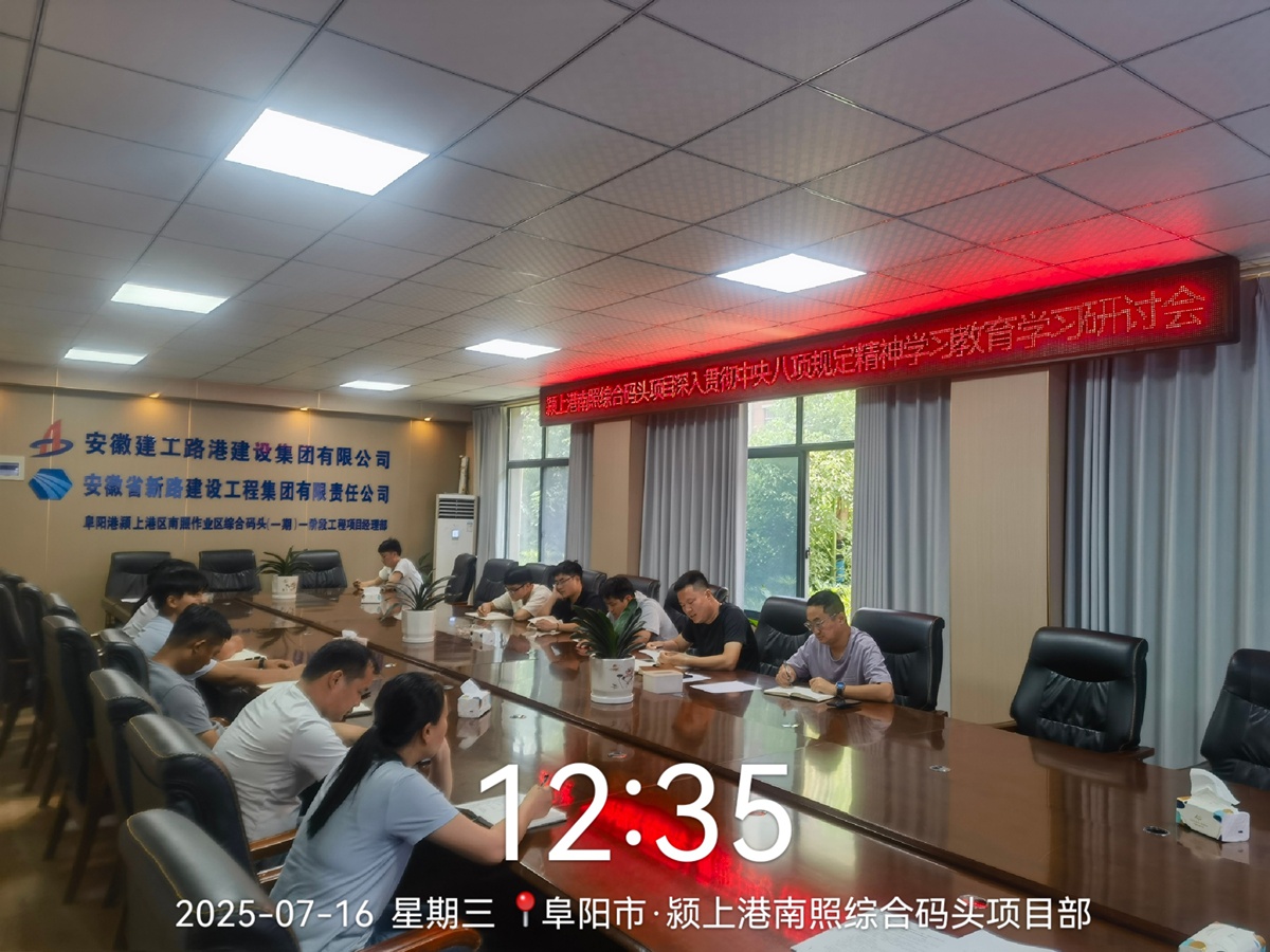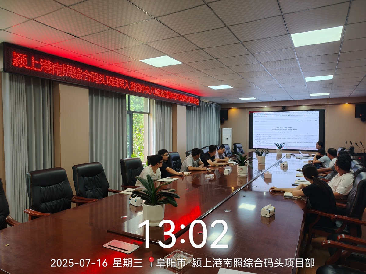 为深入贯彻落实中央八项规定精神,推进作风建设常态化长效化,7月16日中午,颍上港南照综合码头项目部结合“筑牢作风防线 推进常态化长效化”中心思想开展党风廉政学习教育培训活动,本次培训通过《摘编》研读、案例警示、学习研讨、效果测试等环节,全面提升参训人员的廉洁意识和作风效能。