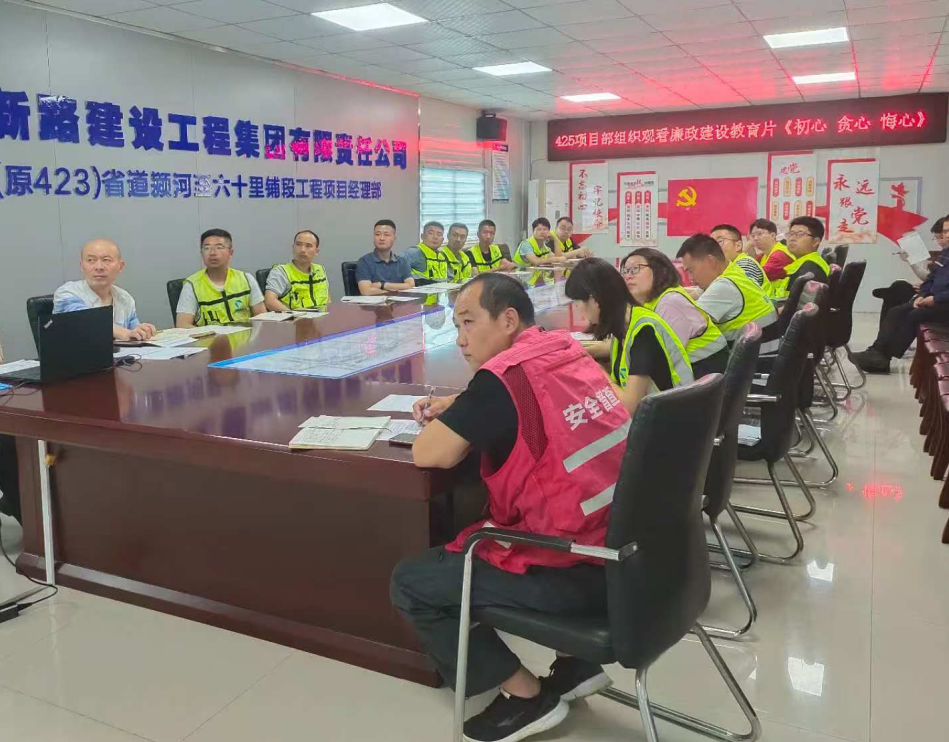 2025年5月14日,425省道颍河至六十里铺段工程项目部组织开展廉政警示教育活动,旨在强化全体成员的廉洁自律意识,筑牢思想防线。活动由项目经理王震主持,项目部全体成员参加。