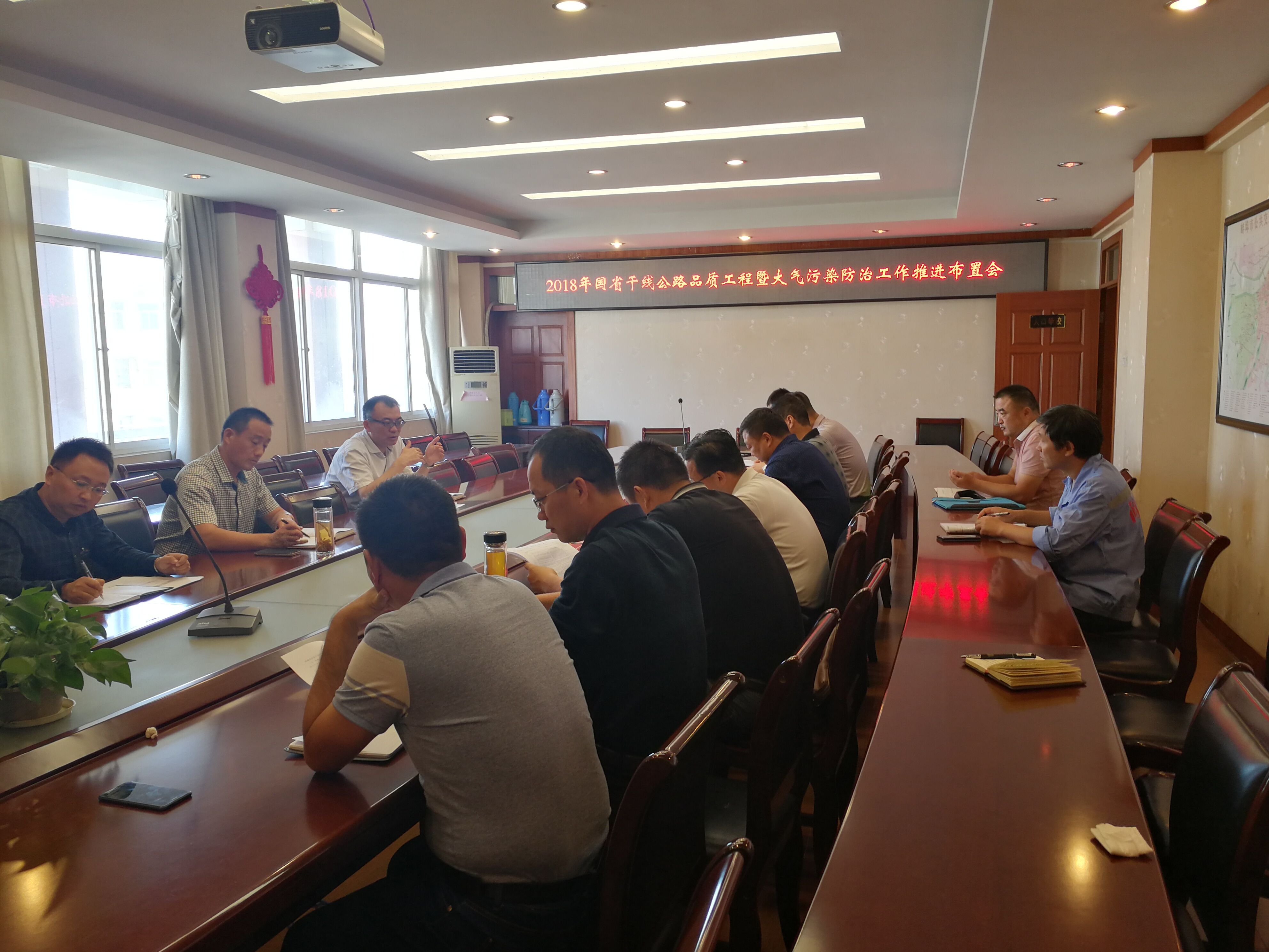 2018年9月27日上午,蚌埠市公路局组织召开2018年国省干线公路品质工程暨大气污染防治工作布置会,蚌埠市公路局副局长刘庆主持会议。项目公司和施工单位、监理单位参加了会议。