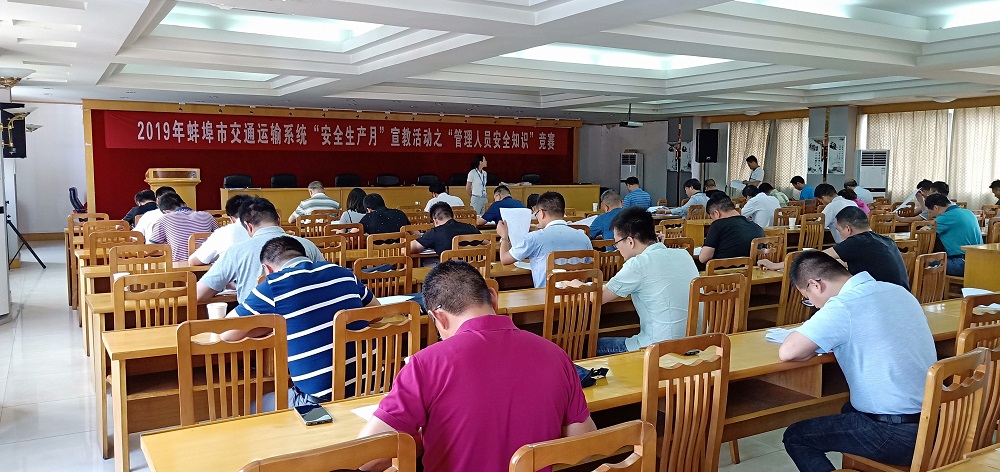 为认真贯彻落实蚌埠市交通局关于开展“安全生产月”活动的相关文件精神。6月21日下午,怀远项目公司组织人员参加了由蚌埠市交通运输局主办的安全知识竞赛活动。