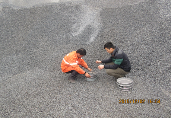 为保障拌合站沥青混合料的正常生产,确保生产质量,提高生产效率,降低生产成本,2015年12月2日,路虹公司人员与正鑫检测公司人员共同对程集料场原材料及沥青混合料进行了现场检测。