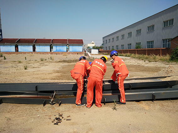 搬迁工人用氧焊切割水稳拌和设备底座