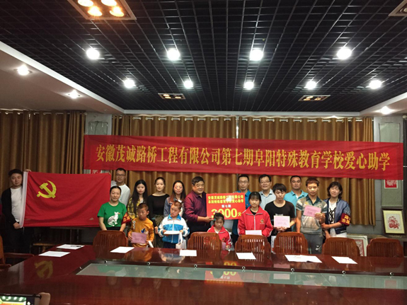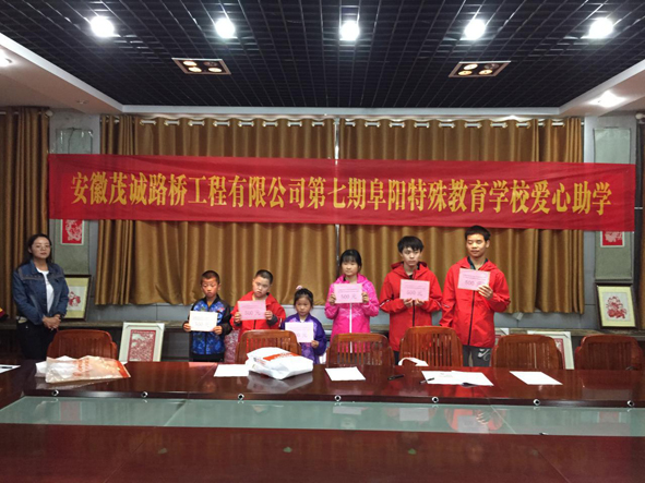 此次爱心助学活动,茂诚路桥公司对6名贫困残疾学生进行了结对帮扶,公司捐赠爱心助学金3000元,帮助他们减轻家庭负担。受捐助的学生代表汇报了的个人学习生活情况,表达了感谢。